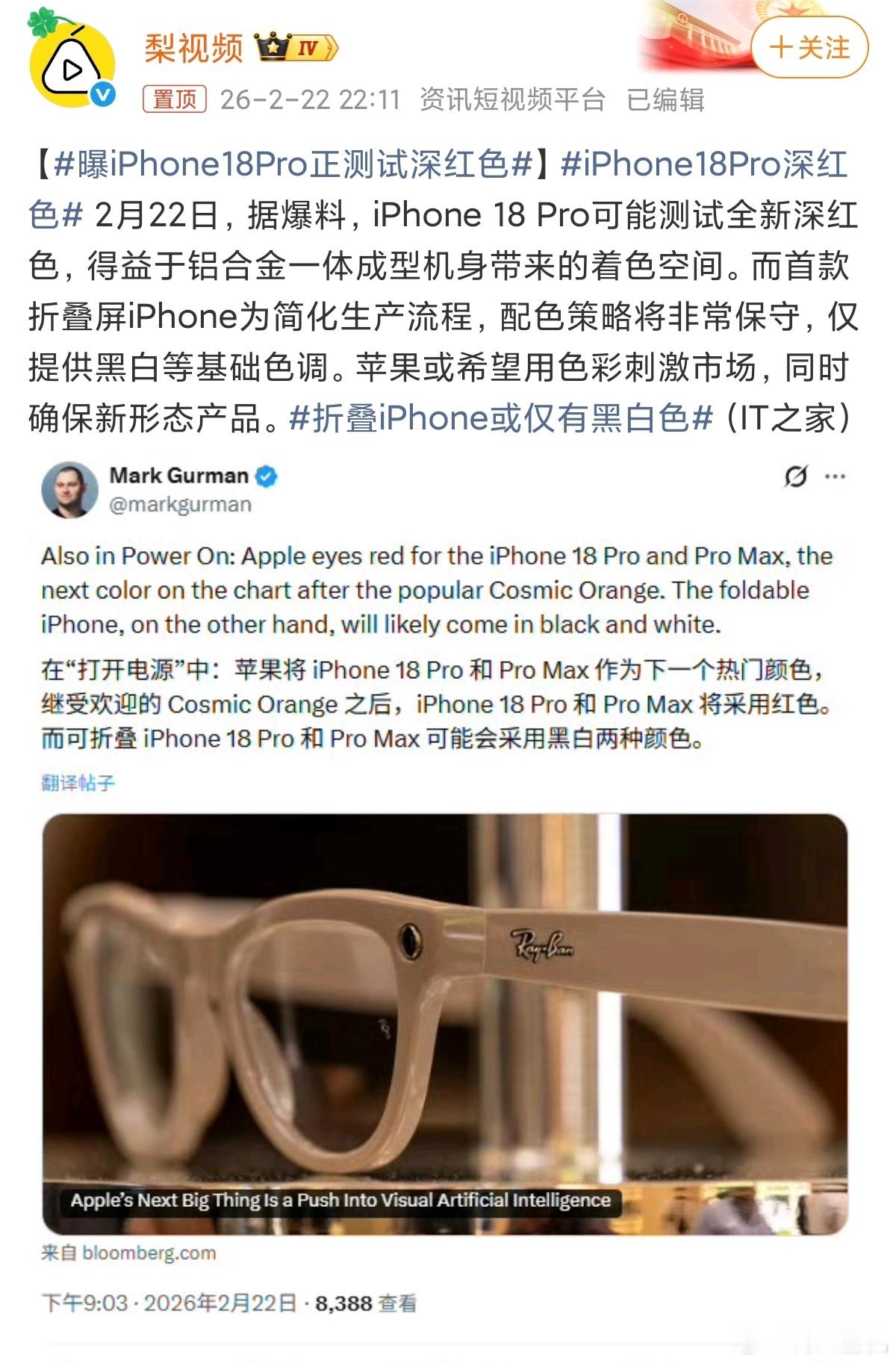 曝iPhone18Pro正测试深红色换色传统来了,说明苹果18基本上没有什么变化,按照惯例来说,苹果在没啥大的变化的时候,就会换一个颜色,推出一个新的颜色,然后大费周章宣传,想想也是,现在的手机哪来这么多技术升级,换颜色才是最简单,最直接的方案,也是能最快让果粉知道这是一款新款iPhone的方式。