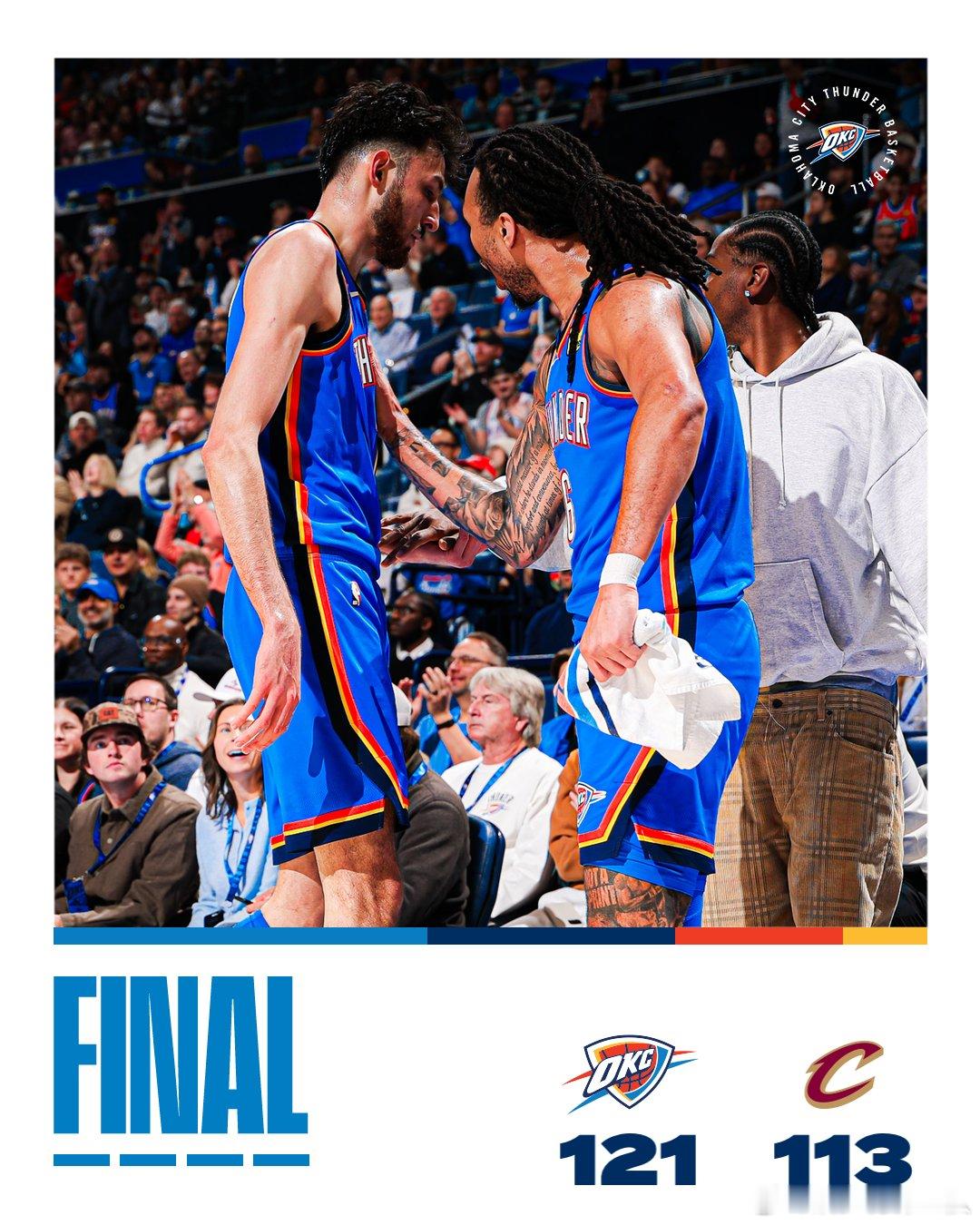雷霆亚历山大、杰威缺阵,以赛亚-乔22分5抢断,卡森-华莱士20分10助攻,切特17分15篮板4助攻3封盖。