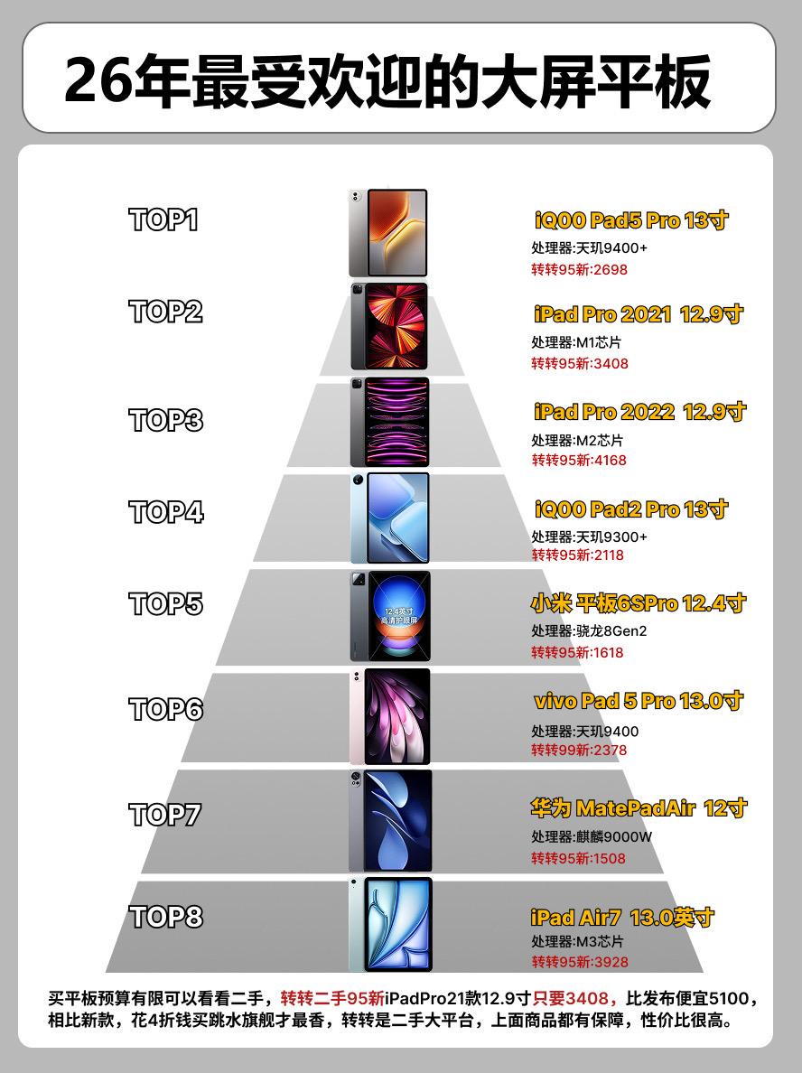 26年最受欢迎的大屏平板。iqoopad5proipadpro2022ipadpro2021iqoopad2pro数码科技 平板平板推荐小米pad6spro vivopad5pro