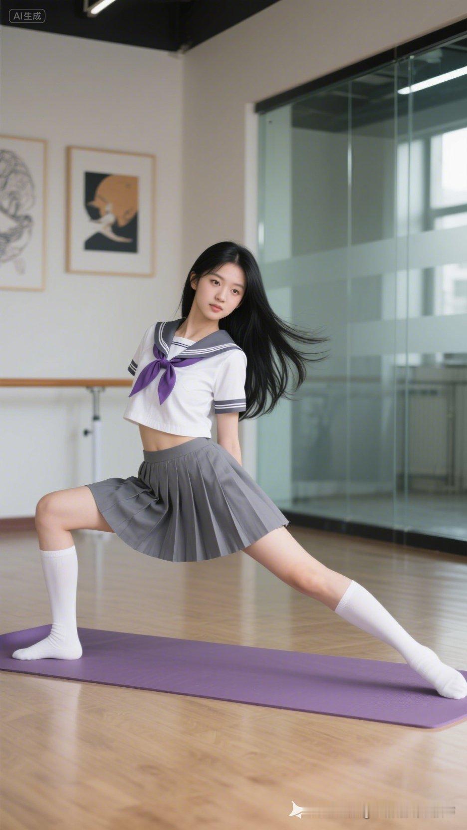 穿水手服的女孩在练瑜伽。