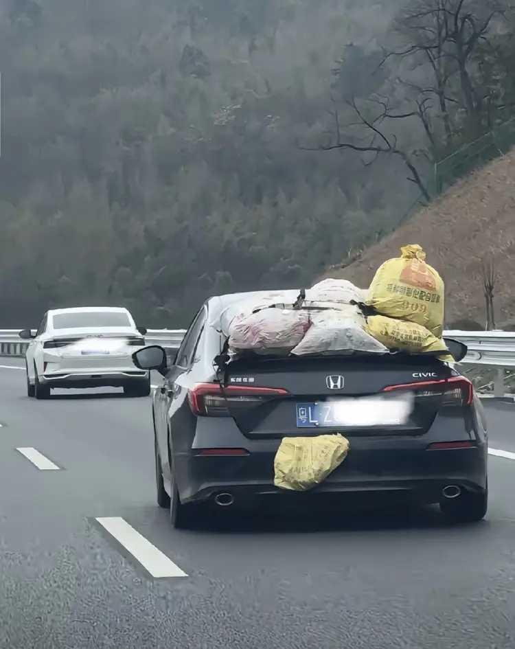 在老家过完春节,要回去上班了。 车尾箱装满了老家的特产。 回乡时只是带几袋糖果饼干饮料,回去则大包小包全部塞得满满当当。