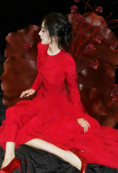 杨幂的一组红裙子写真快保存下来