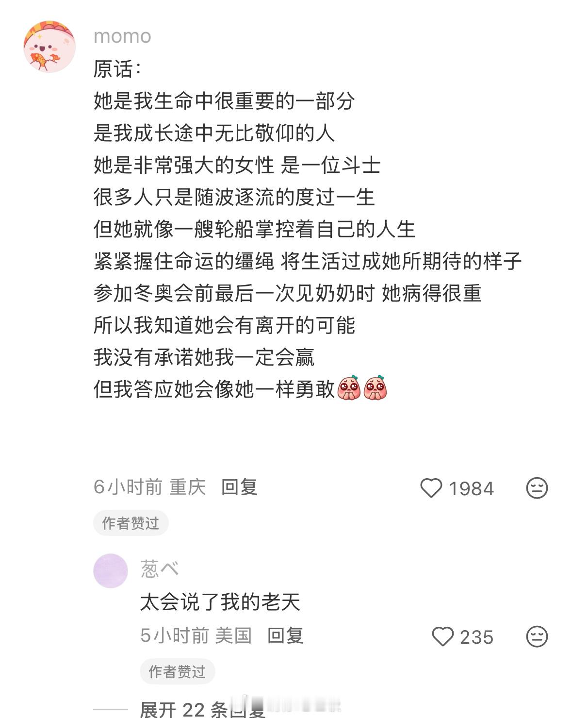 写得好好谷爱凌,用另一种逻辑在怀念奶奶
