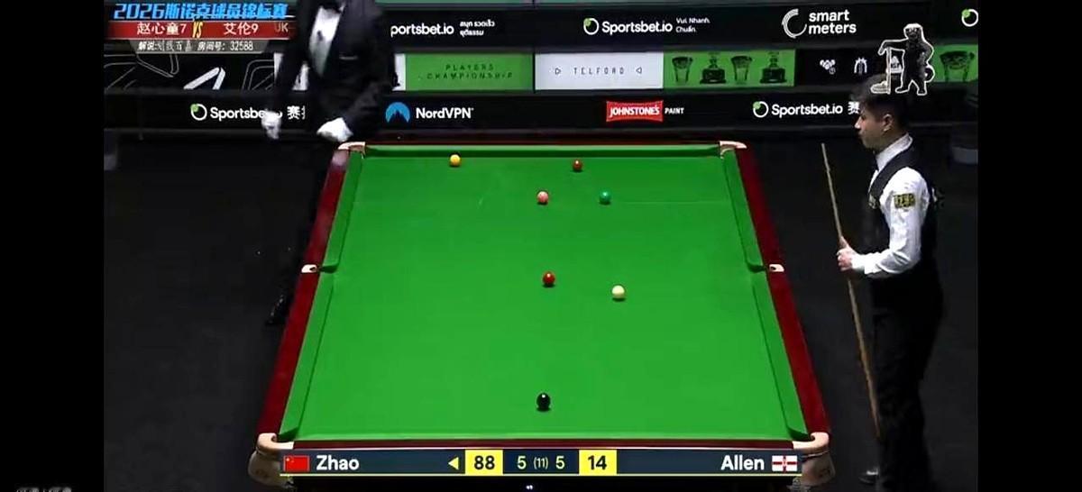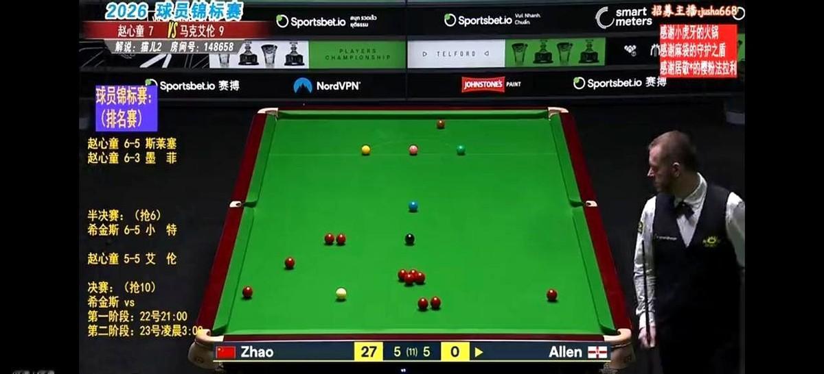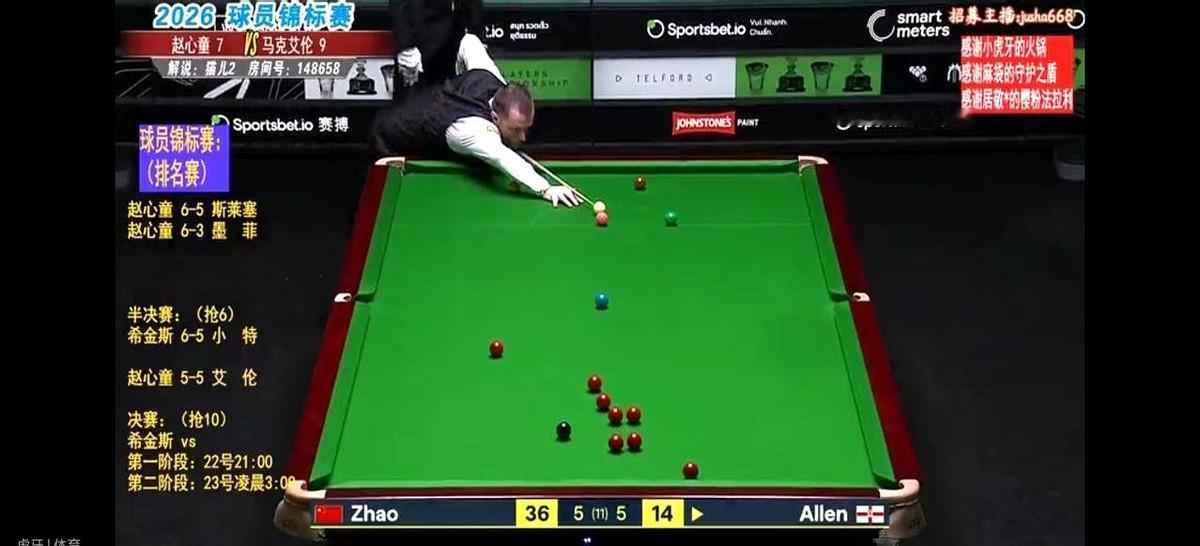 解说员都急了,喊着“千万别打,防一杆!” 2026斯诺克球员锦标赛半决赛,赵心童对阵马克·艾伦。开局就被打了个1-3,整场比赛一次都没领先过,眼看就要出局。 但中场休息后,他硬是靠着单杆140分、103分,把比赛拖进了决胜局。5-5平,艾伦失误,赵心童上手,局面瞬间紧张到窒息。 打到最后一颗关键的大角度黑球,所有人都觉得该稳一手做个防守。赵心童没犹豫,直接一杆薄进,精准入袋,用最冒险的方式终结了比赛。 这就是冠军的料,敢在悬崖边上跳舞。那个决赛胜率100%的男人,又来了。