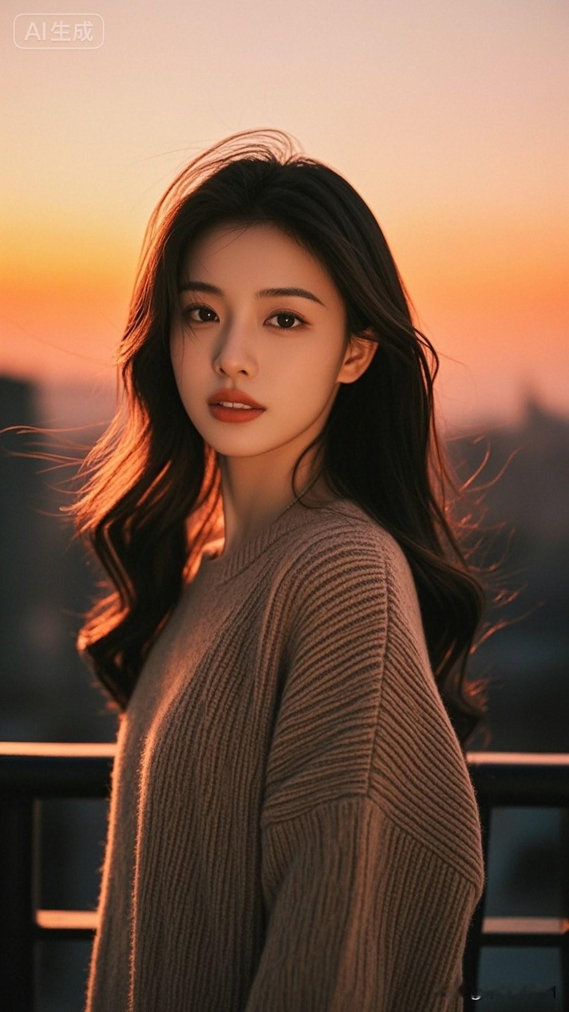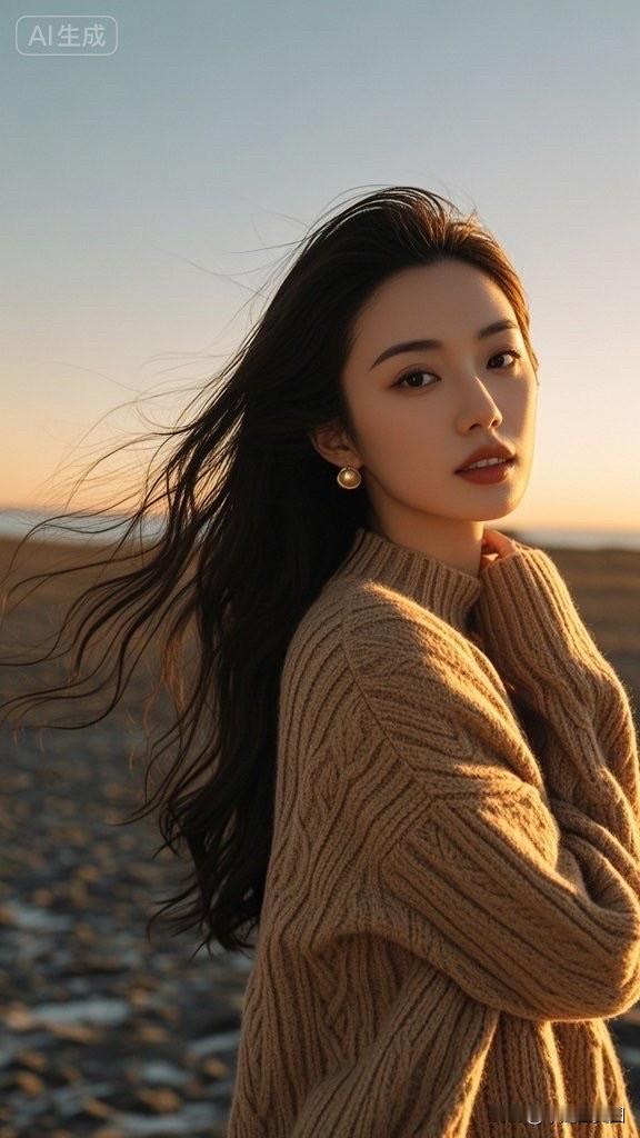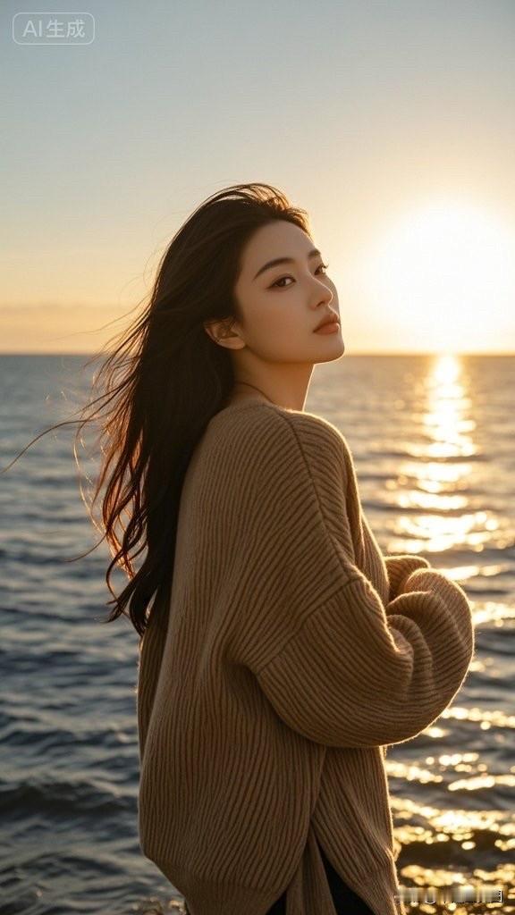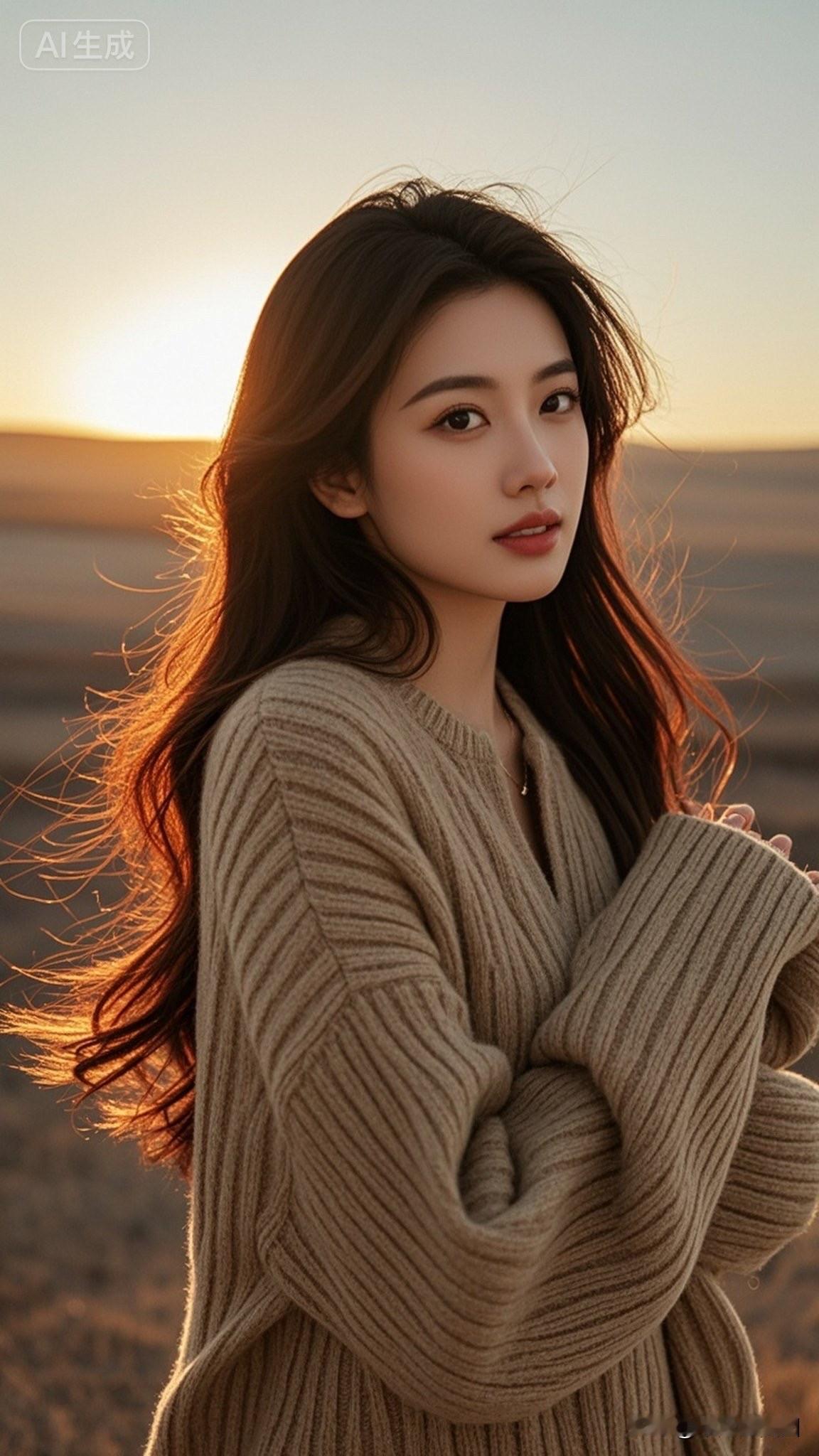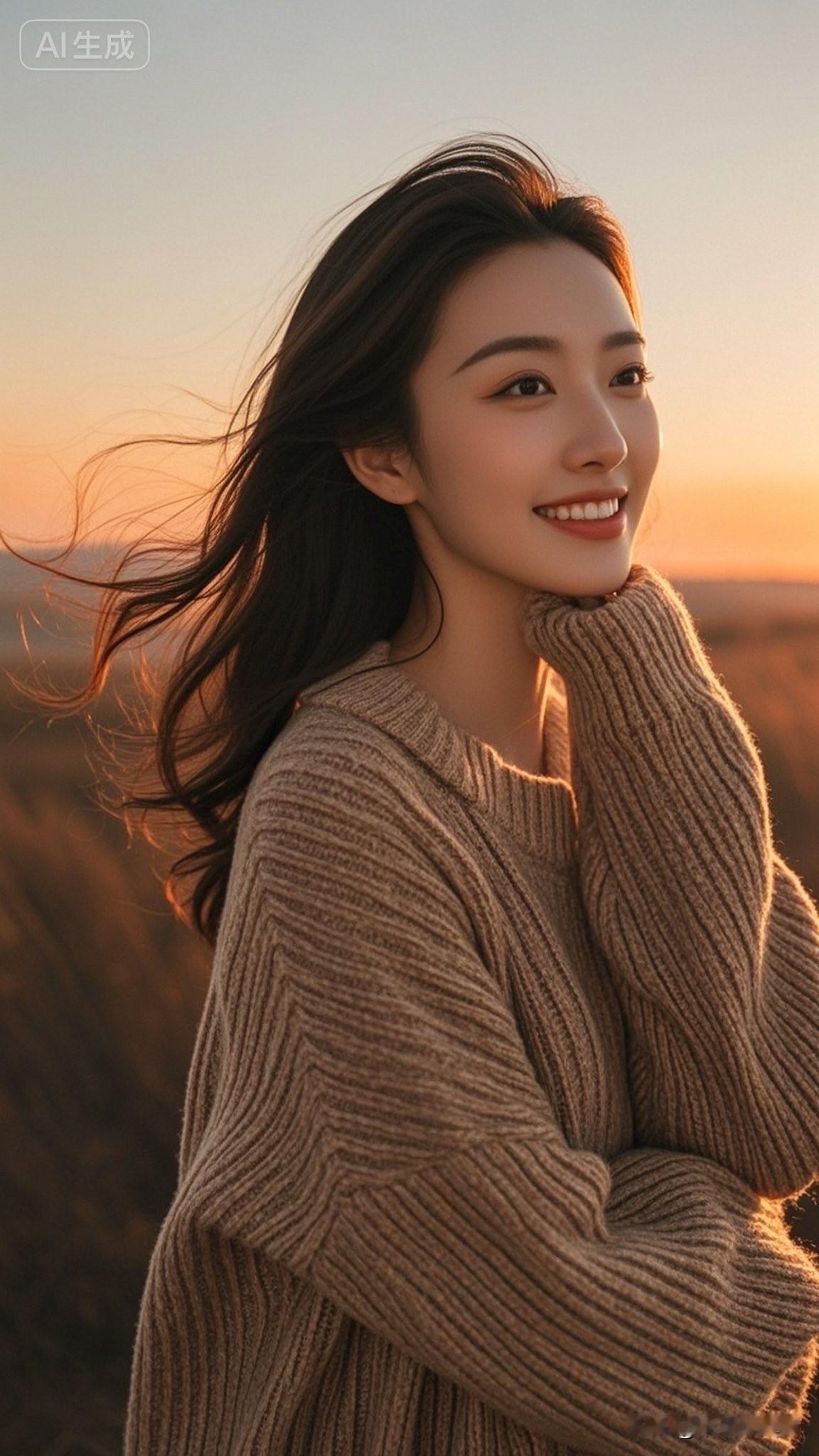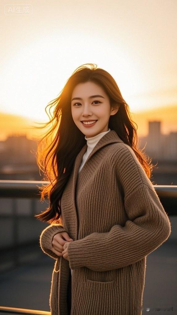 夕阳下的温柔微笑,暖意融融的毛衣,随风飘扬的秀发,仿佛时间在这一刻静止。🌅💖🌿
