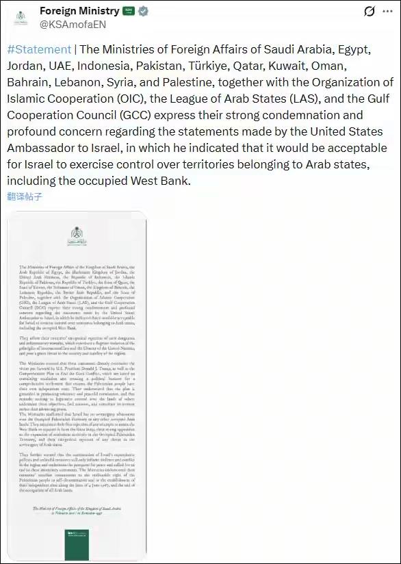 美国驻以色列大使迈克·赫卡比这回可真是捅了马蜂窝。在接受媒体采访时,他居然大放厥词,声称“若以色列拿下整个中东,那也没问题”。这话一出,整个中东瞬间炸了锅,沙特等14个国家直接联合起来,把这位大使骂了个狗血淋头。 这可不是什么外交辞令,而是赤裸裸的挑衅。赫卡比这番言论,说白了就是给以色列的扩张主义撑腰,完全没把阿拉伯国家的主权放在眼里。沙特、阿联酋、埃及这些国家,哪个不是中东的硬茬子?你美国大使这么说话,不是明摆着打脸吗? 更离谱的是,赫卡比还试图找补,说这只是“某种夸张说法”。拜托,这种话能随便夸张吗?中东局势本来就够紧张的了,你这么一搅和,不是火上浇油是什么?难怪沙特等国会气得跳脚,直接发联合声明强烈谴责。 说实话,美国大使这种言论,不仅破坏了地区稳定,也暴露了美国在中东政策上的双标。一边喊着要和平,一边又纵容这种极端言论,这不是自己打自己的脸吗?沙特等国这次的反应,也算是给美国提了个醒:中东不是你想怎么玩就怎么玩的。 各位读者你们怎么看?欢迎在评论区讨论。