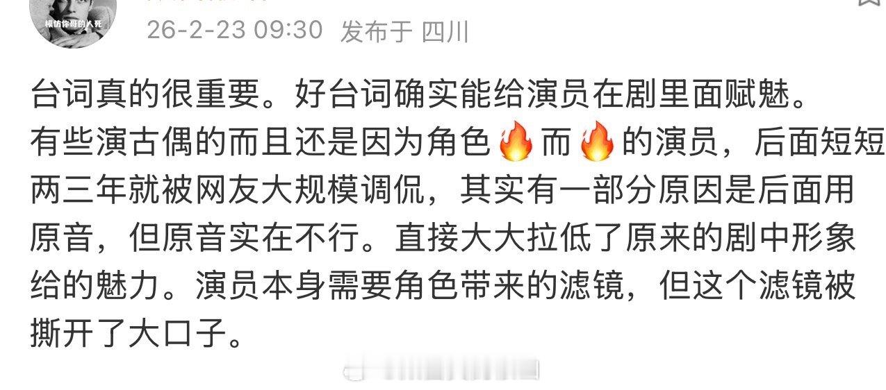 最近有个演员因为台词在🫘被大范围、高频次审判