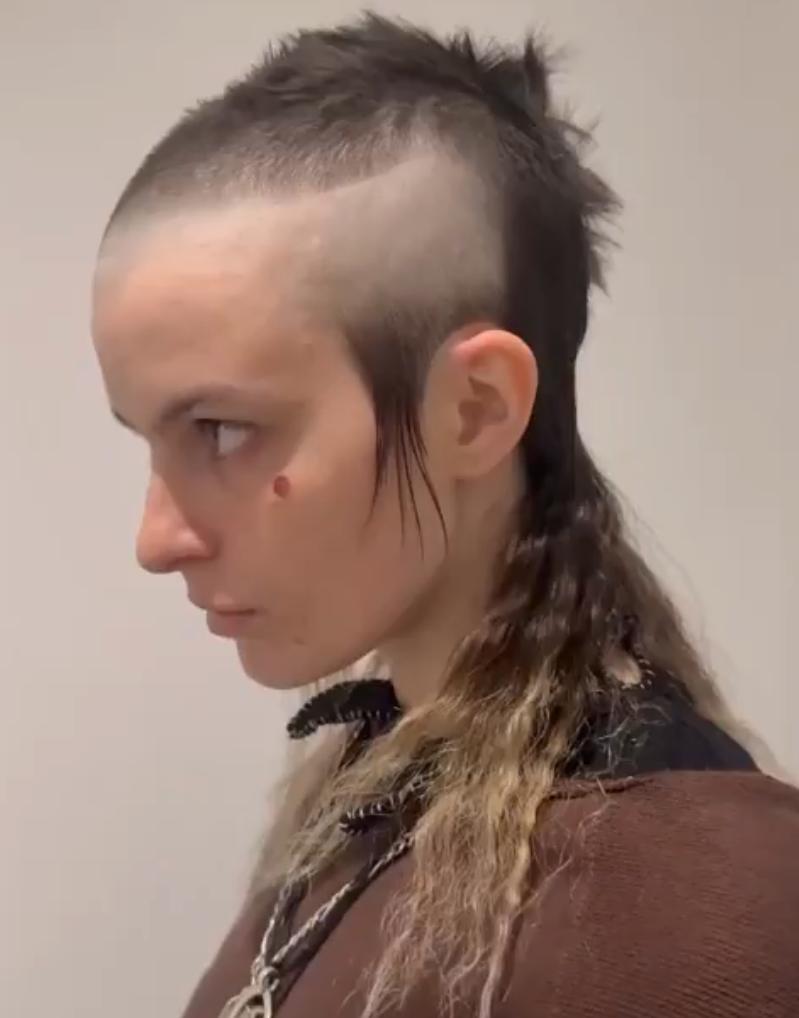 据说这是2026的发型趋势,一位年轻女子展示了夸张的莫霍克发型:两侧剃光,留着金色脏辫,身穿饰有毛皮边的棕色毛衣,脸颊上还点缀着一颗美人痣。 朋克亚文化的反叛历史——可以追溯到20世纪70年代的The Clash乐队——或是像巴黎世家2022年备受争议的广告宣传这样的高级时装界的荒诞之作,以此来展现人们对极端造型的看法存在分歧:有人认为这是力量的象征,也有人认为这是过度消费。 各位看官你怎么看呢