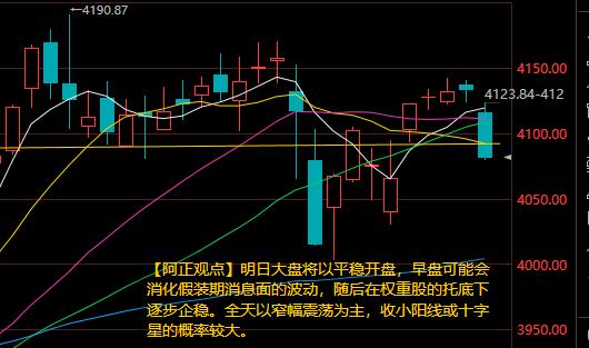 【明日(2月24日)大盘将以平稳开盘 全天以窄幅震荡为主】 节前最后一个交易日三大指数仍在调整,节后A股有望迎来结构性机会,但当前市场估值处于高位区域,短期可能以震荡为主,需要留意结构性分化…… 【明日分析】明日(2月24日)大盘将以平稳开盘,全天以窄幅震荡为主,收小阳线或十字星的概率较大。 早盘可能会消化假装期消息面的波动,随后在权重股的托底下逐步企稳。 本周趋势:先说本周趋势,总体以开稳震荡、结构性分化开局,节后市场情绪和资金需要时间凝聚,出现全面普涨的可能性较低,更可能是“指数稳、主线强”的格局。沪指节前收于4082.07点。短期来看,下方4030点附近是重要的技术支撑位;上方压力首先关注4095-4100点区间,若能有效突破,再看4139点附近。 明日指数:上证指数下行的支撑位先看4079点,强支撑位看4050-4060点区域;上行压力位先看4095点附近,若市场情绪较高,可能会上探4100-4110点区域。 热点方向:重点关注核心主线(科技成长),区分短期轮动、中期关注。 核心主线(科技成长):机器R/ A应用,受春晚机器R表演和港股相关概念大涨刺激,有望成节后最强主线之一,关注产业链核心环节;苹果产业链/消费电子,2月24日苹果股东大会,AI技术路线图可能面为催化剂,关注供应链具备AI创新能力标的;AI算力/大模型,A股发展的基础设施,政策与资本双重加持,关注海外算力链、国产替代等方向。 短期轮动(事件驱动):院线概念,春节档票房火爆,可能刺激相关板块短期表现,但持续性有待观察;石油/油运,美伊冲突担忧升温,可能带来短期交易性机会。 中期关注:MSCI中国指数调仓,2月27日收盘后生效,新纳入的A股(如安集科J等)在生效日尾盘可能有被动资金买入; 有色金属、基础化工等。 操作策略:多看少动,均稳配置、绝不追高。市场分化是主旋律,与期追逐不确定的指数涨跌,不如聚焦确定性的主线方向。 对于机器R、AI应用等节前已有表现、假期再度发酵的板块,如果明日高开过多,不宜追涨,可以等待盘中回踩均线或午后资金确认回流时,小仓位试探。或者,挖掘板块内相对低位、有补涨潜力的标的。 仓位管理,建议整体仓位控制在中性水平(5-7成),这样进可攻、退可守,即便市场震荡,心态也能保持平衡。 【综合判断】明日大盘将以平稳开盘,早盘可能会消化假装期消息面的波动,随后在权重股的托底下逐步企稳。全天以窄幅震荡为主,收小阳线或十字星的概率较大。 我写精品,你来点赞,相互支持、携手共进。 (个人观点,仅供参考,据此操作,责任自负)