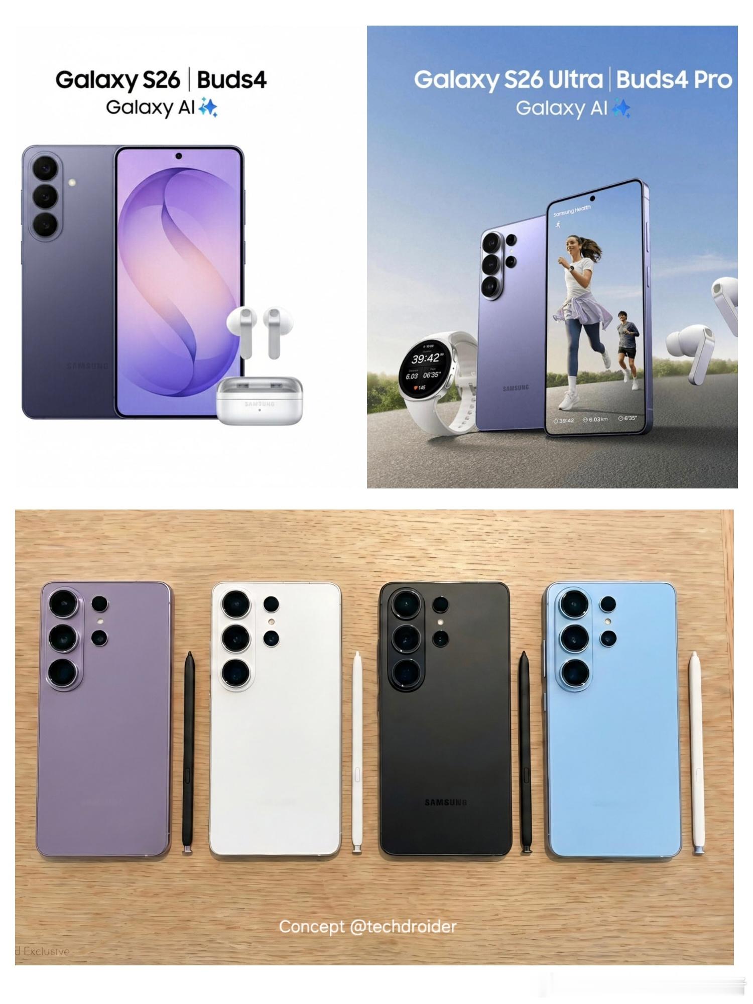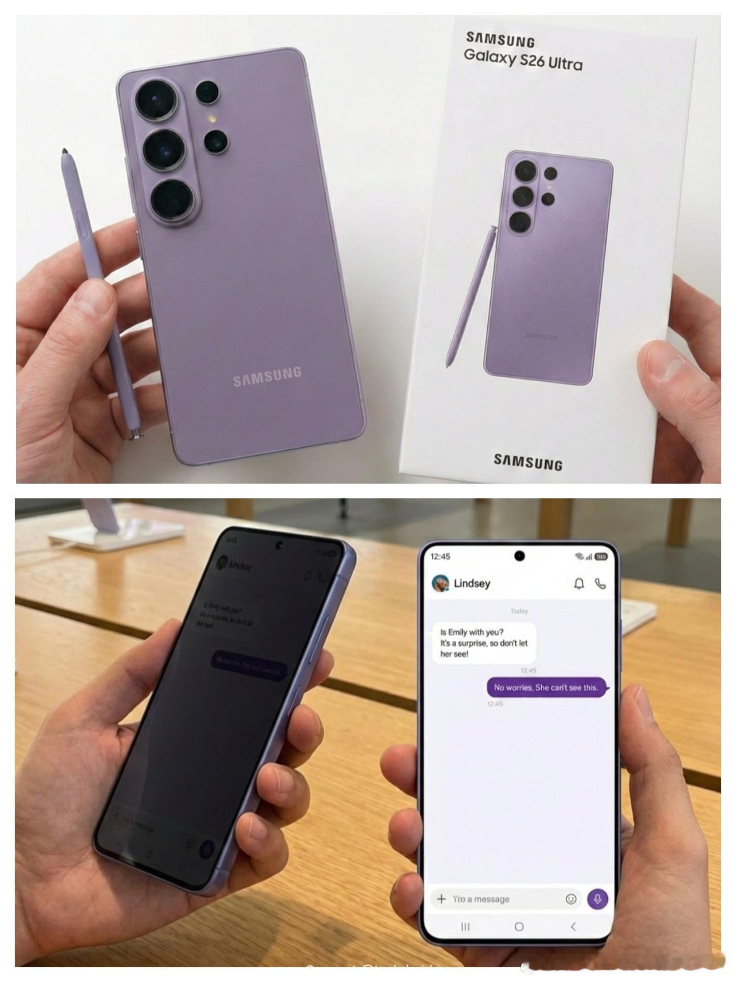 根据媒体报道,三星Galaxy S26 Ultra将会搭配一块6.9英寸的2K直屏,三星M14发光材料,说是四等边设计。整体设计依然是家族化风格,比较硬朗,个人觉得还是好看的。