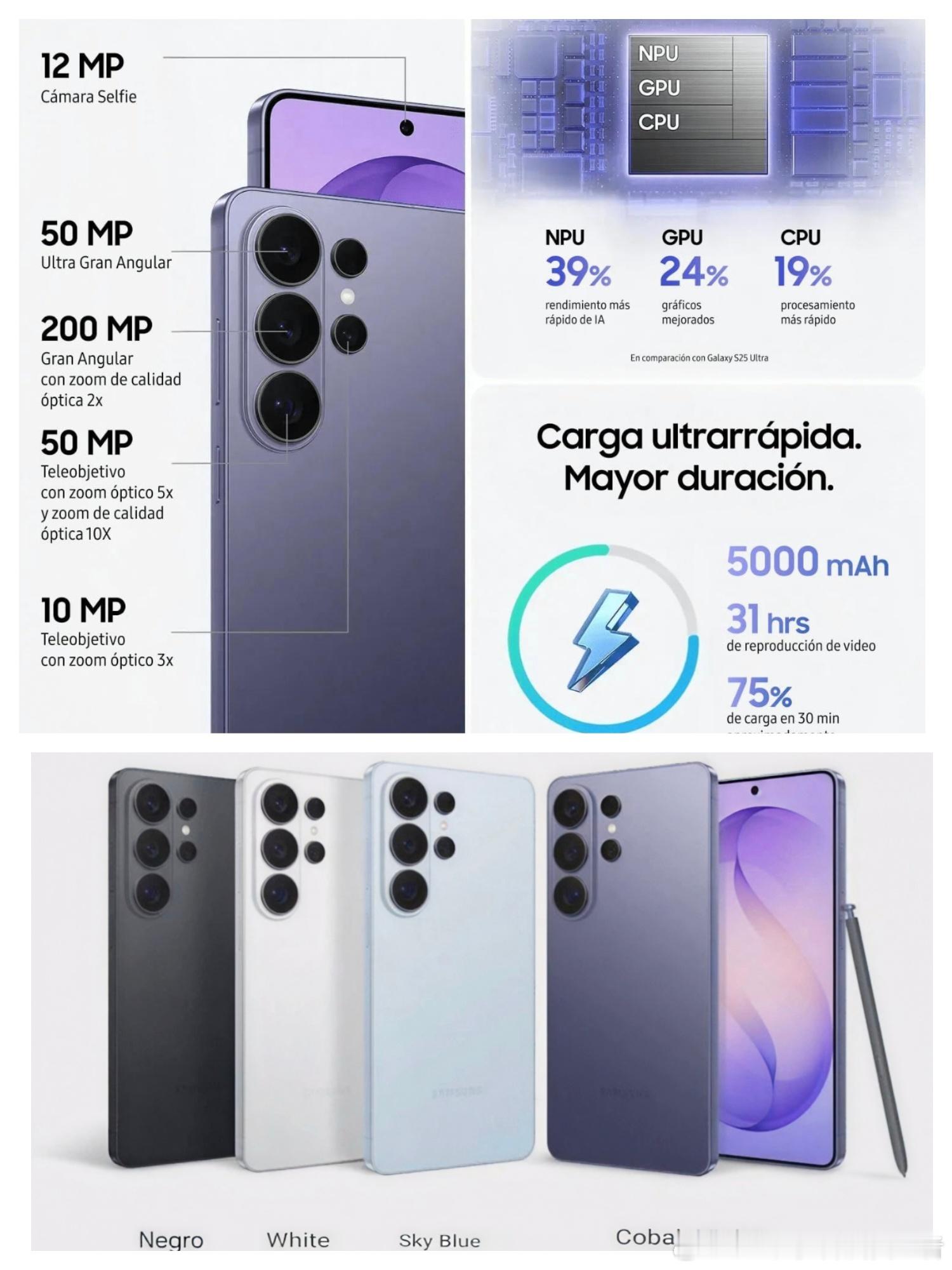 三星Galaxy S26 Ultra配置曝光,电池依然很稳。