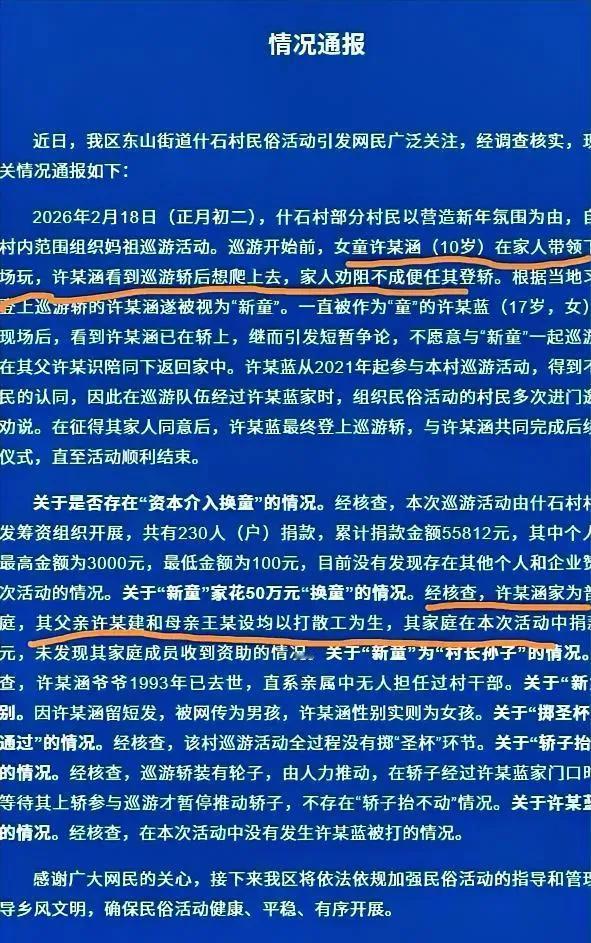 这一串“刚刚好”,简直比小说还剧本,比春晚魔术还丝滑😂 10岁小孩,全套红衣、红纱巾, 刚好想当新童, 刚好绕过所有人, 刚好爬上预备好的轿子, 刚好不用掷圣杯、不用请神, 刚好大家都没意见,还直接塞香, 刚好全程没视频、手机都坏了。 最绝的是:马甲上的“许”字, 不是姓氏,是许愿的许。 这哪是巧合,这是精准卡点、全员配合、天选剧情啊。 这么多“刚刚好”都能发生, 我也想借借这运气, 刚好中个508万不过分吧! 笑不活了,这辟谣辟得,越描越有画面感