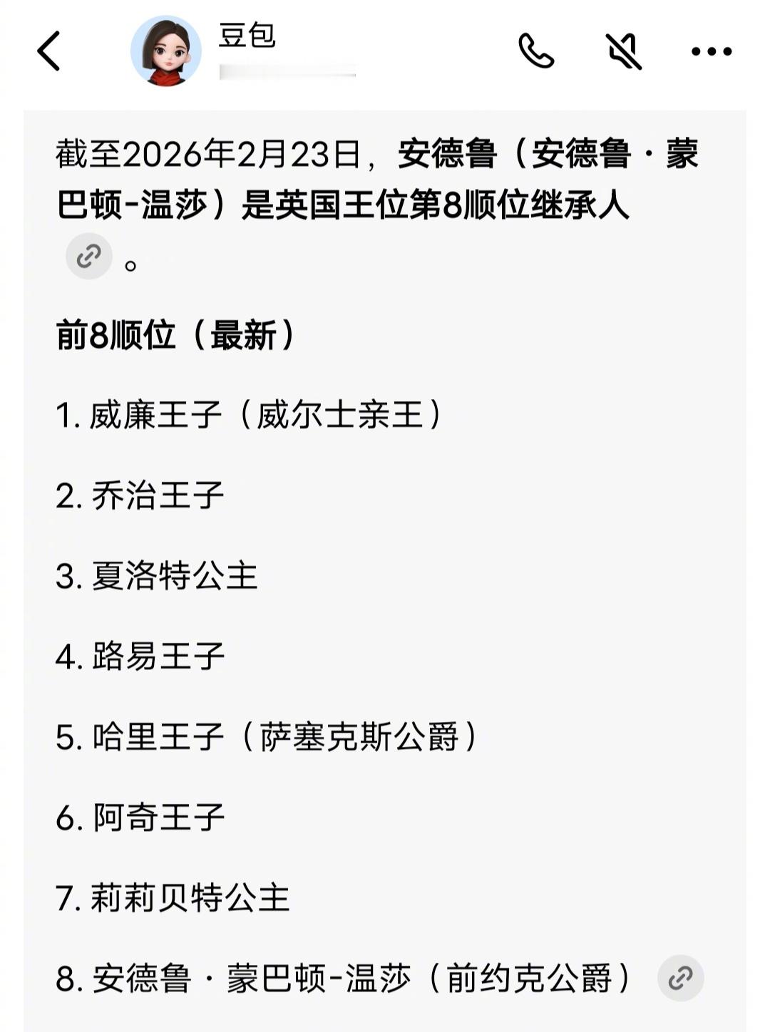 查了一下,安德鲁是英国王位第8顺位继承人,也就是说必须他大侄子一家四口没了,二侄子一家三口没了,才能轮到他这个叔叔继承英国王位。