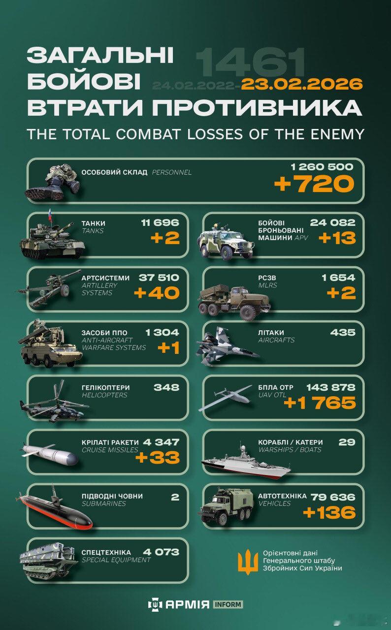 截至2026年2月23日“超级大国”俄罗斯损失战报