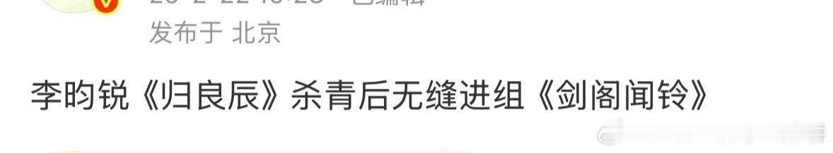 李昀锐下部的🫓是归良辰,之后瓜主有的说现代剧,有的说剑阁闻铃,哪个更好