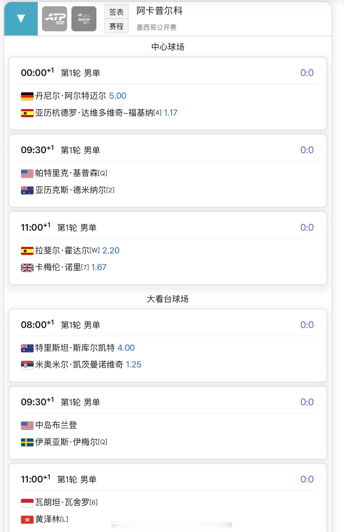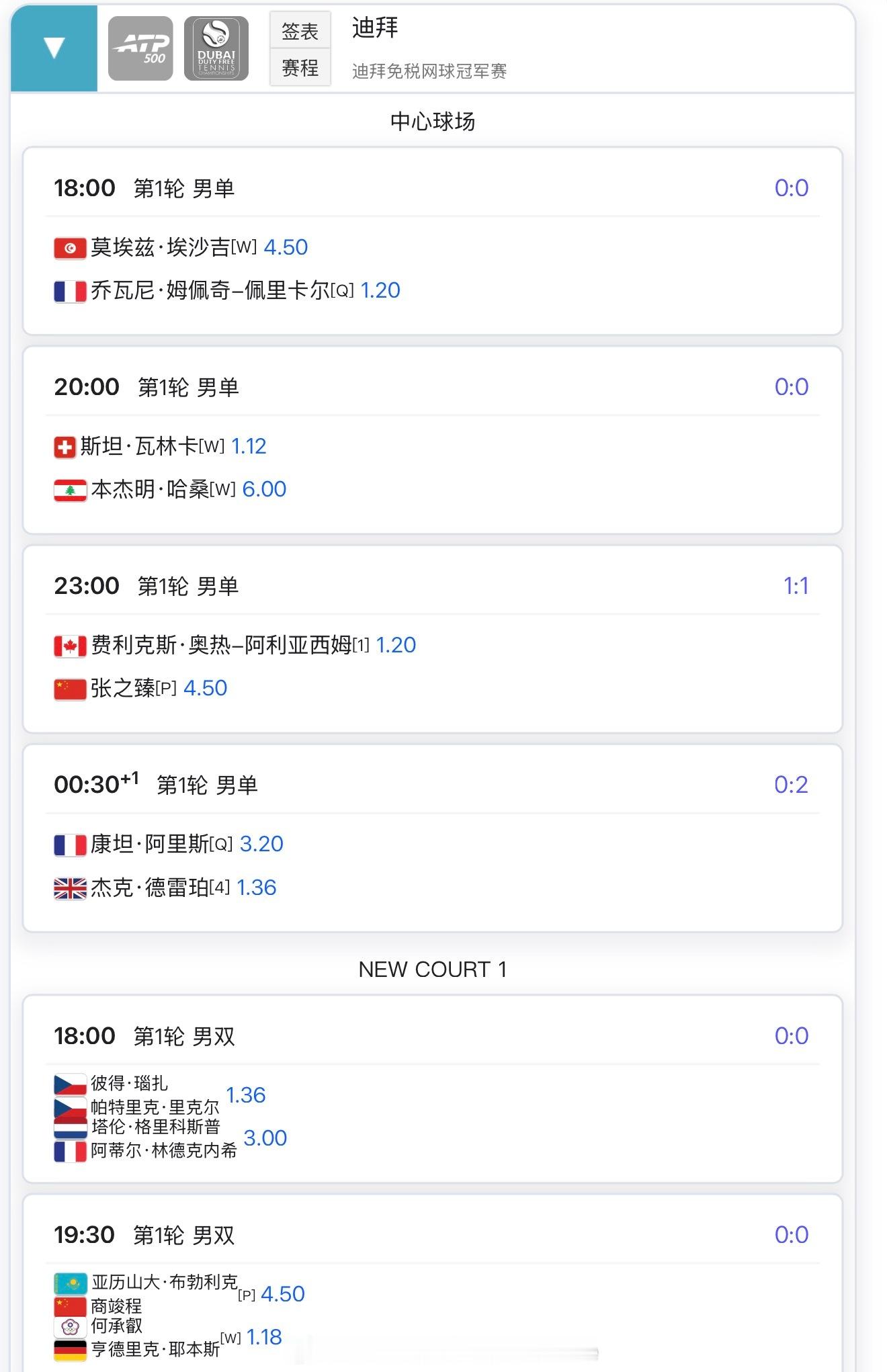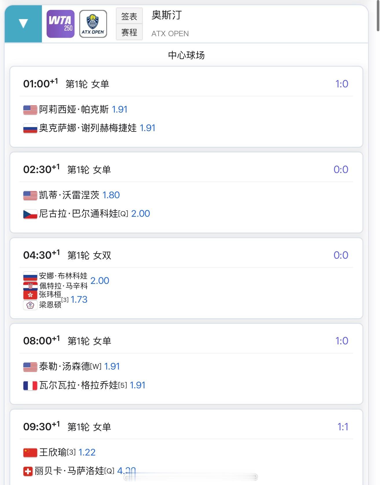 23:00张之臻vs阿利亚西姆+10:00王欣瑜vs马萨洛娃
