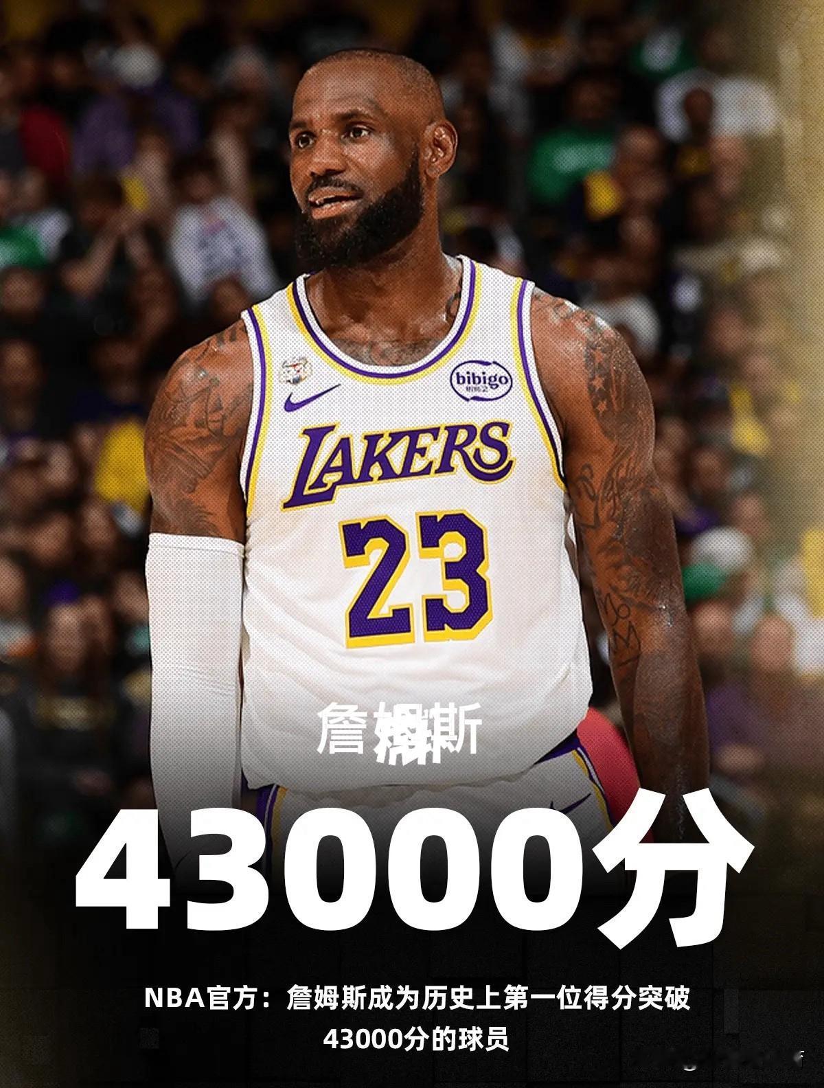 詹姆斯成为历史上第一位得分突破43000分的球员 今日NBA常规赛湖人89-111不敌凯尔特人。 本场比赛,湖人队球员勒布朗-詹姆斯出战34分钟,投篮21中9,三分球5中1,罚球1中1,得到20分4篮板5助攻2抢断1盖帽。 此役后,詹姆斯目前个人职业生涯总得分达到43008分。 詹姆斯达成这一里程碑,无疑是篮球史上浓墨重彩的一笔。纵观他的职业生涯,从初入联盟时那个天赋异禀的高中生,到如今成为历史得分王,詹姆斯一直用坚持和努力书写着属于自己的传奇。 在这场比赛中,尽管湖人输球,但詹姆斯的表现依旧可圈可点。他在场上的每一次突破、每一次投篮,都承载着无数球迷的期待。那20分,不仅仅是数字,更是他对篮球热爱的体现。 对于詹姆斯个人而言,43000分是新高度,也是新起点。未来,他或许还会继续创造更多的纪录。而对于整个篮球界来说,詹姆斯的成就激励着一代又一代的年轻球员,让他们明白,只要有梦想并为之奋斗,就有可能在篮球的舞台上绽放光芒。相信在未来的日子里,詹姆斯还会给我们带来更多的惊喜与感动。