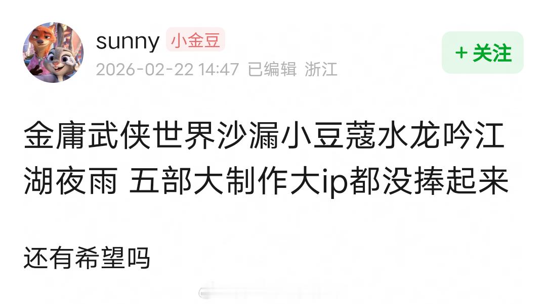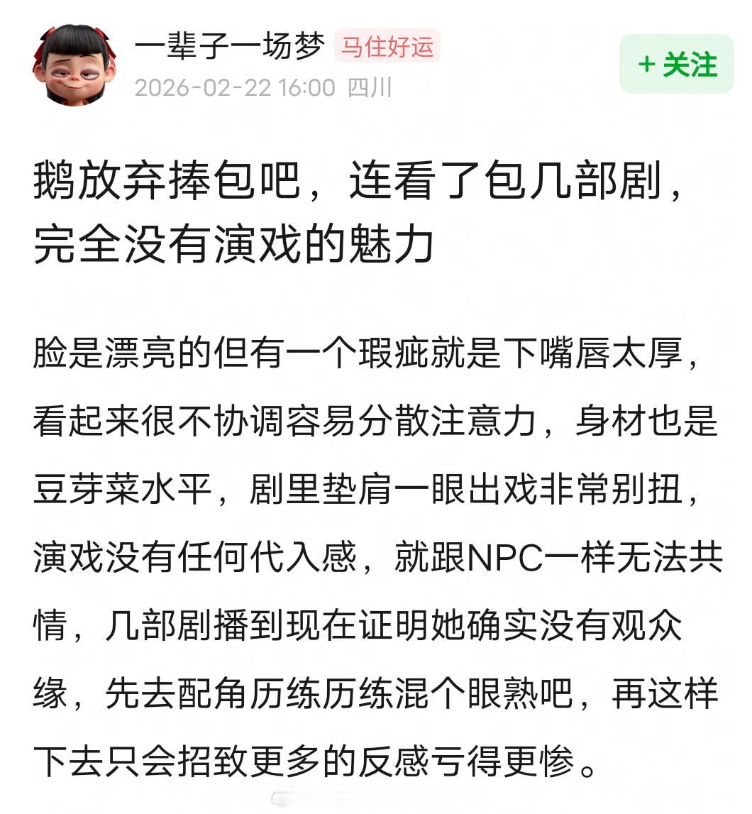 网友说《江湖夜雨十年灯》包上恩的演技太防爆自己了,双眼无神,全程一个表情。手握各种古偶现言大IP,合作过成毅、罗云熙、宋威龙,人气流量依然没有任何起色。平台可以放弃了,这么多资源砸下来,连一个出圈的角色都没有,完全没有演戏的魅力。江湖夜雨十年灯 慕慕昭昭CP