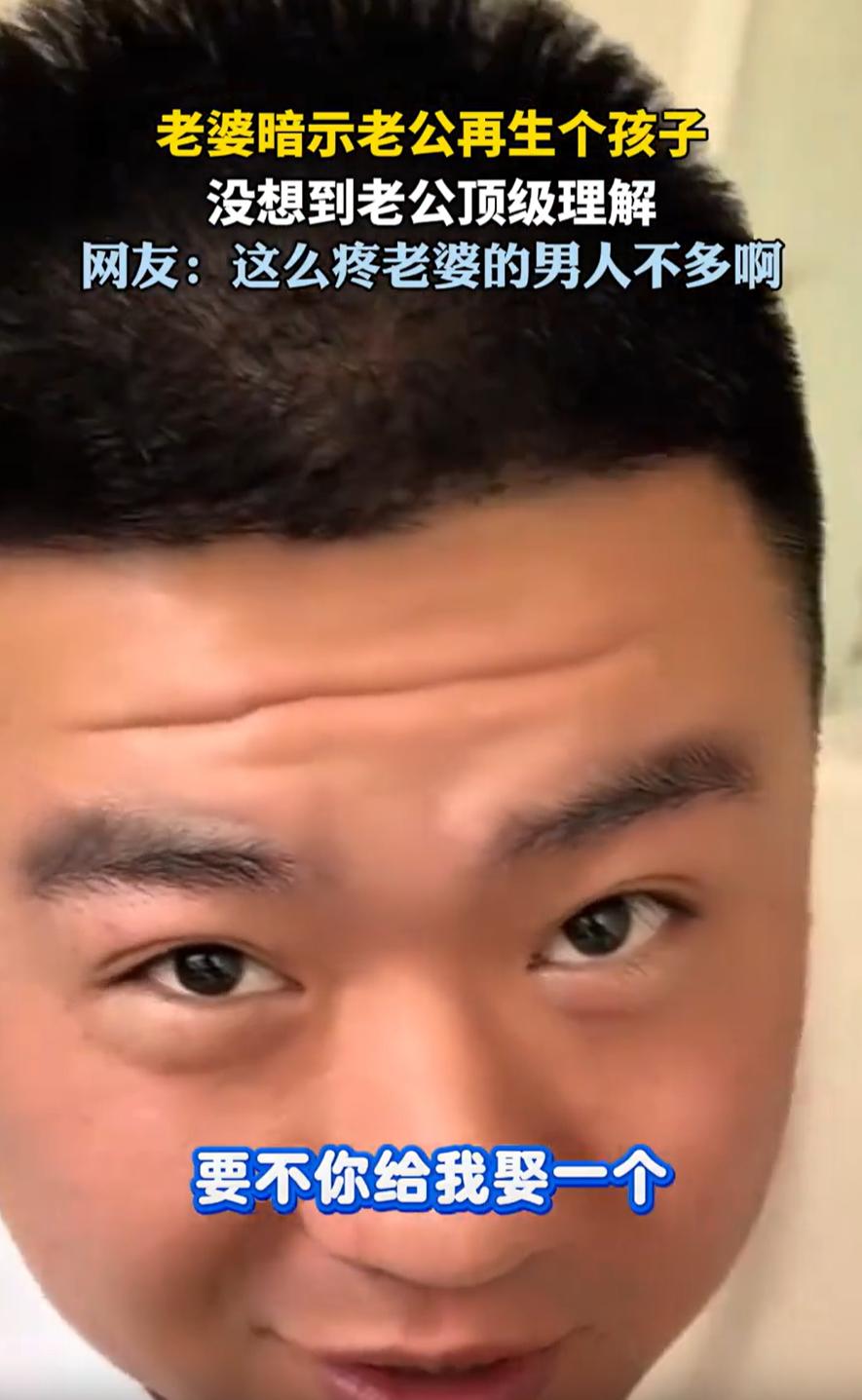 想的怪美呢!吉林,夫妻俩晚上躺在床上休息,老婆想要暗示老公生二胎,没想到老公顶级理解,老婆刚说要家里再添一口人,老公就说再娶一个,直接把老婆的念头都给消掉了 老婆先是试探性地问了一句:你感觉咱家的人口少不?老公当时正躺着放空呢,一听这话立马警觉起来,还以为家里出了什么事,一脸懵地反问:不少啊,咋的了? 看老公没反应过来,老婆干脆把话说得明白点:你想不想再添一口人? 按正常思路,这时候老公应该顺着话头往下聊,要么说行啊咱们再要一个,要么说说现在条件不允许再等等。但这哥们儿的脑回路不知道拐哪儿去了,直接来了句:你要给我再娶一个啊? 老婆当场就愣住了,赶紧解释:我是说再生一个 结果老公还来劲了,一本正经地给老婆分析:别生了吧,生孩子多遭罪啊,要不你给我再娶一个,让她生,这样咱家就多两口人了 话音刚落,老婆的小拳拳就招呼上去了。想得怪美呢!还想再娶一个,这哪是添一口人,这是想添一屋子人吧? 不得不说,这老公的“求生欲”是真低,大半夜的,老婆跟你聊人口问题,那能是聊别人吗?肯定是想聊你们俩的事啊。结果倒好,直接把天聊死了不说,还把自己聊成了靶子 不过仔细想想,这位老公后面说的那句话,倒是有点意思。他说生孩子多遭罪啊,这话听着像是借口,但仔细一品,是不是也在心疼老婆?生孩子确实遭罪,从怀到生再到带,哪一步不是女人在扛?只是他表达的方式太欠揍了,非要加个再娶一个的梗 生活里这样的场景太多了。你想跟他认真聊个事,他给你整得跟脱口秀似的。你气得想打人,他还觉得自己挺幽默。但话说回来,能这样斗嘴的夫妻,日子过得也不会太差。真要是一句话都不说了,那才叫完蛋