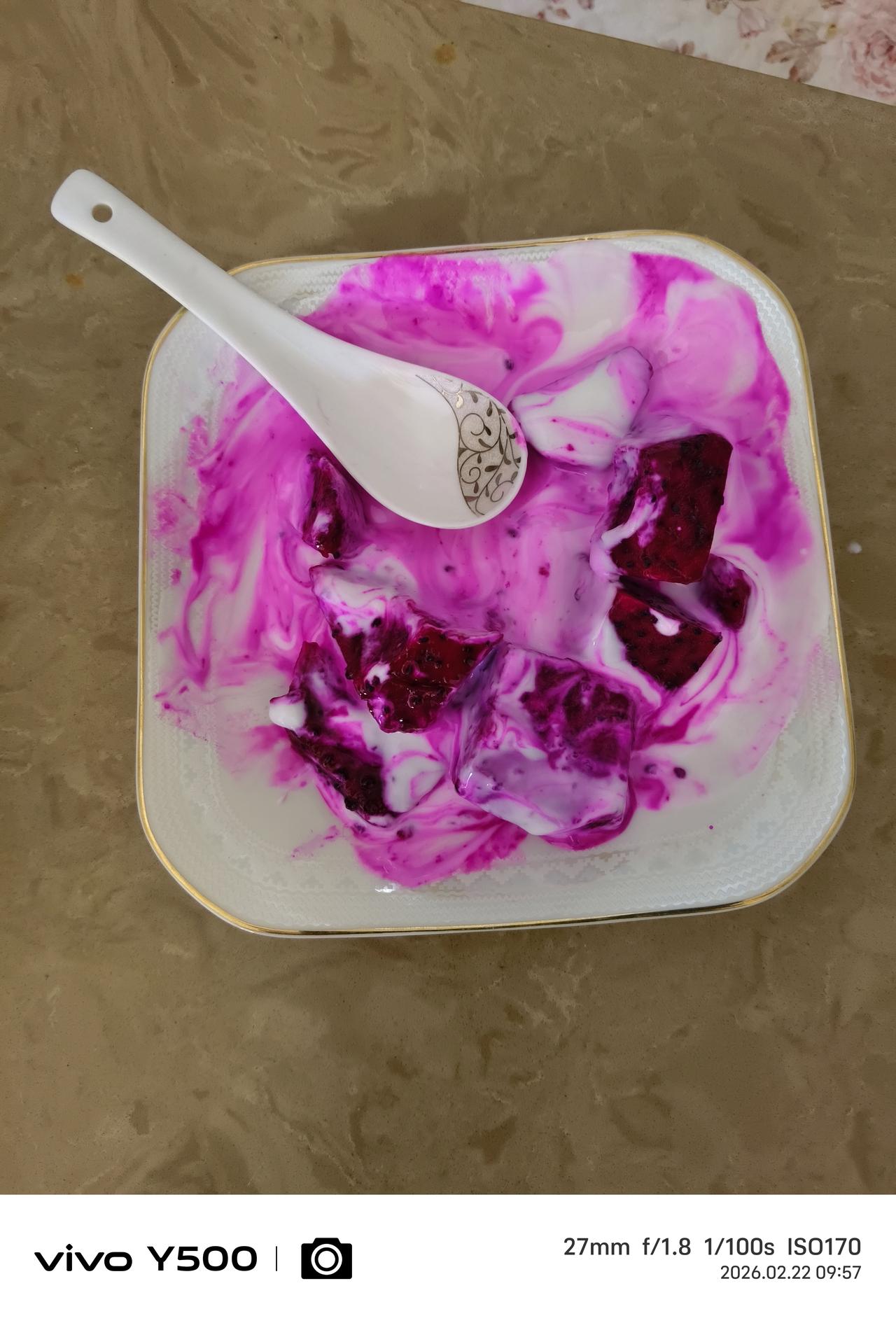 火龙果搭配酸奶,据说这是美容养颜,不得其意