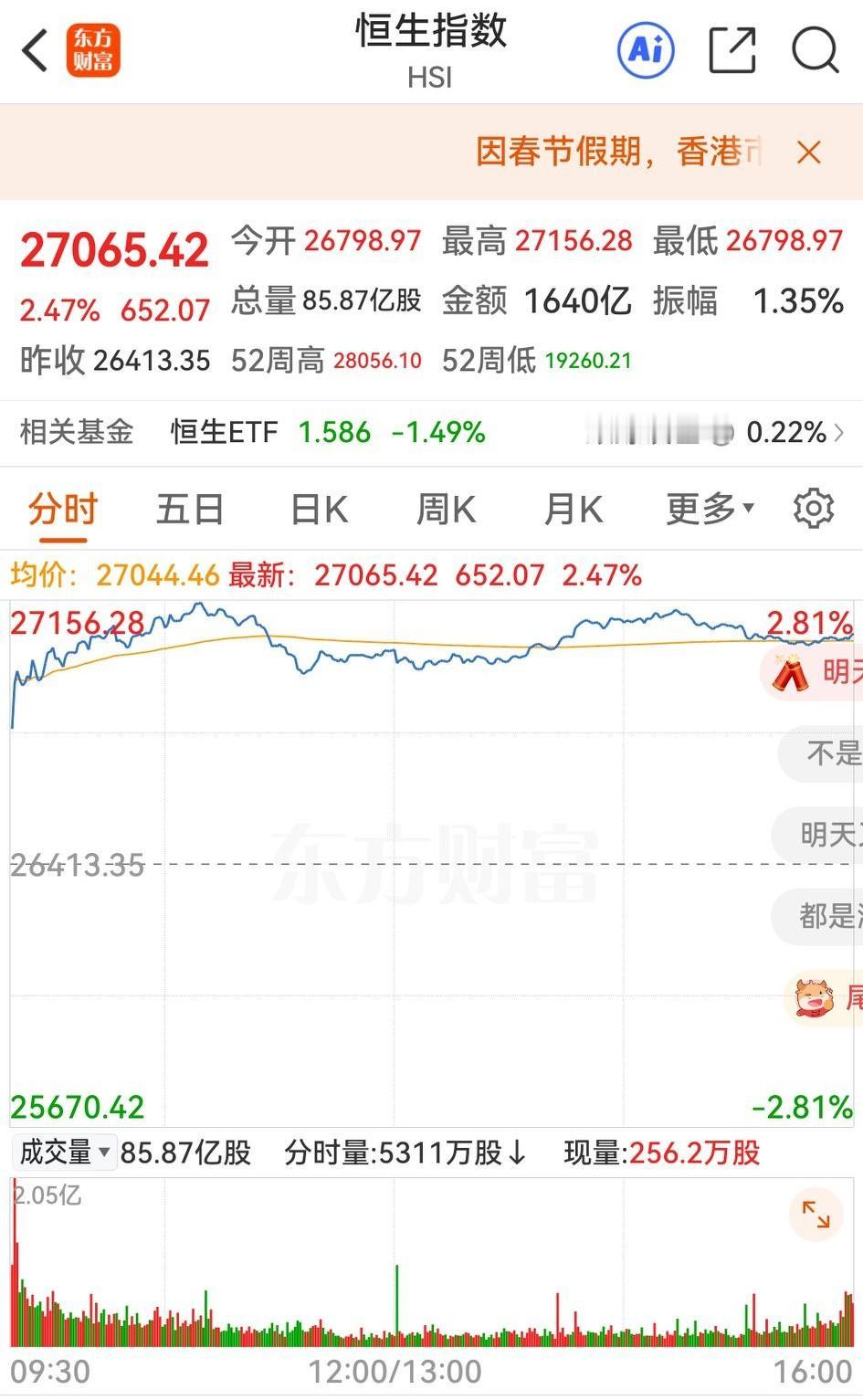 明天大A年后重新开市,提前对持有科技股的兄弟们道恭喜。 大A股民中,不少人爱看美股港股脸色,看到了吗,今天港股大涨,特别是百阿腾等科技股一扫年关阴霾,高开高走,全面收复失地,非常给力。 实际上,春节期间全球并无大雷,AI、算力、6G、智驾等未来产业利好不断,叠加春晚上的机器人、AI表现优异,再加上两会将实质性催生未来产业的新增投资落地,大科技的优质个股轮番炒作是必然的。只要对科技有信仰,短线涨跌、先涨后涨无所谓,只需坐以待“币”。