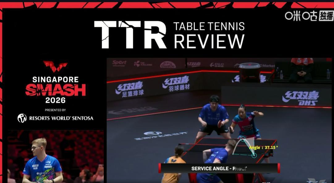 突发!大布发球回抛也被扣分了! 这次新加坡大满贯, 对发球回抛要求太严格了, 大布发球被裁判扣分, 大布不服请求了鹰眼, 结果37度了。 刚刚达科也被回抛扣分, 达科请求鹰眼, 只有22度, 远远没有达到30度。 可以看出, 这次裁判对发球回抛, 判罚非常严格! 大布和大藤沙月临时搭混合组合, 但是已经2:0领先世界第一组合申裕斌/林钟勋了。