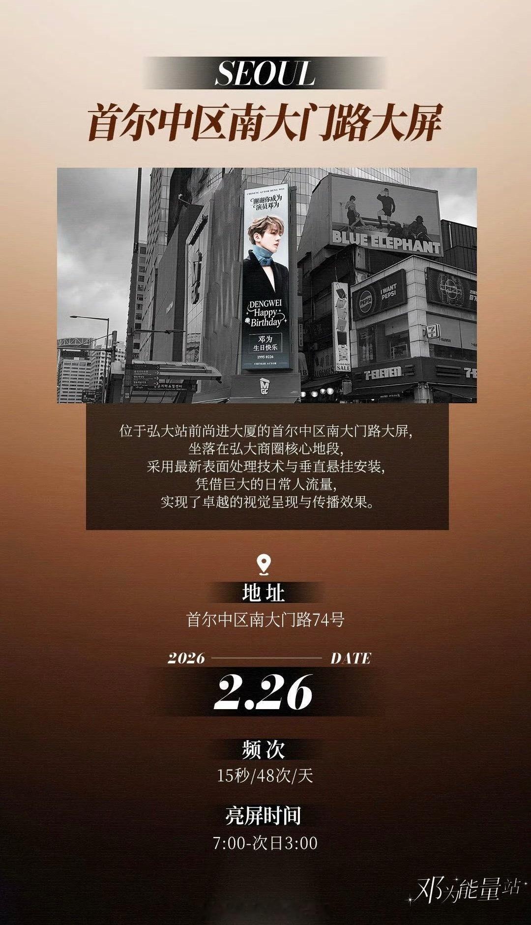 邓为生日应援,国内102城市,602大屏应援;海外也有首尔南大门,纽约时代广场等