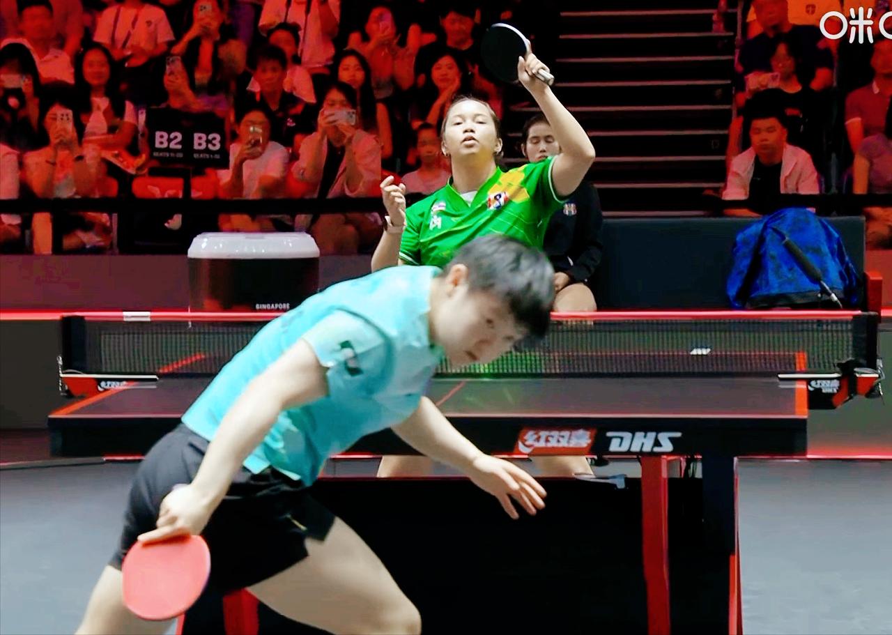 笑死我了!帕拉南朝天打了一个球! 孙颖莎立马低头, 难道怕球掉下来打到自己,哈哈 莎莎内心还是一个小女孩嘛。 莎莎和帕拉南实力差距较大, 第一局莎莎10:2拿到局点, 11:2拿下。 周冠达说: 孙颖莎平时打球第一局是试探, 今天直接就开抡了。
