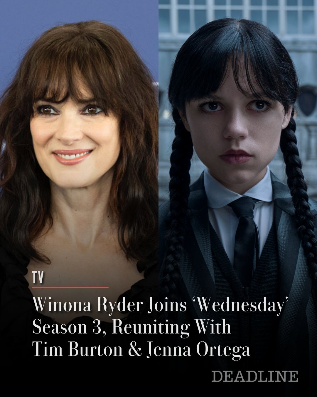 薇诺娜·瑞德加盟网飞热剧《星期三》第三季‼️出演一个尚未公开的客串角色。此前还有官宣加盟该剧第三季的伊娃·格林,将饰演星期三的姨妈奥菲利亚!