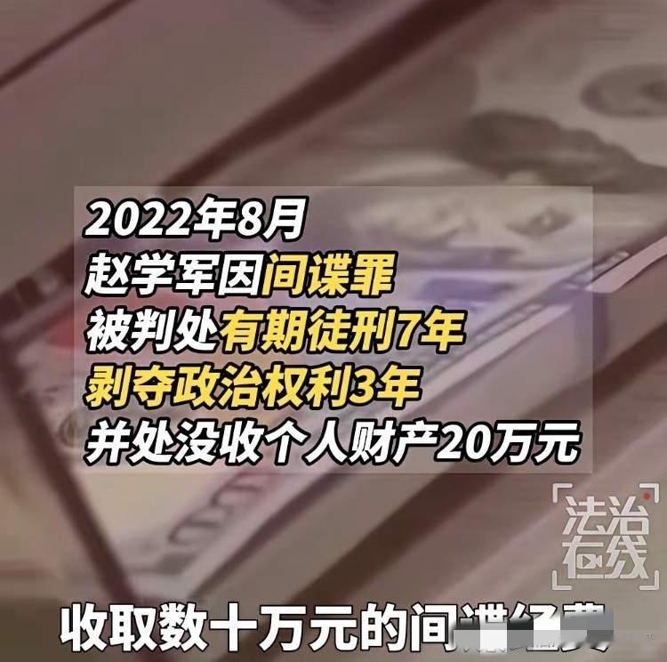 天理难容!留学被收买!航天人才变间谍!出卖国家机密换小钱!结局绝了。国家培养的航天精英,居然为了钱,甘当境外间谍??? 赵学军,我国重点航天科研院所核心人员,手握国家顶级机密。2009年出国留学,被境外情报机构用金钱狠狠收买。 这十年间!他利用职务之便,疯狂窃取我们国家航天领域核心要害情报,源源不断卖给境外,真是吃着碗里的看着锅里的啊 太恶心人了! 背叛国家、背叛科研初心、背叛无数人的心血 ,这种人实在可恨! 这不天网恢恢疏而不漏!2019年6月,国安机关雷霆出击,当场将其控制了! 2022年8月,法院重锤宣判:间谍罪成立,判处有期徒刑7年!好啊,该的他! 吃着国家的饭,砸着国家的锅,罪有应得! 曾经前途无量的科研人才,一念贪念,身败名裂,牢狱缠身! 无事献殷勤,非奸即盗!这种道理他难道不明白吗?哎,这也告诫咱们境外势力的糖衣炮弹再咋诱惑,也不要碰,更不要想着藏得好就不会被发现,要知道纸包不住火啊! 守护国家机密,人人有责! 大家谁说这种背叛国家的人,该不该重判? 外国间谍 国家秘密泄漏 航天专家 海归间谍