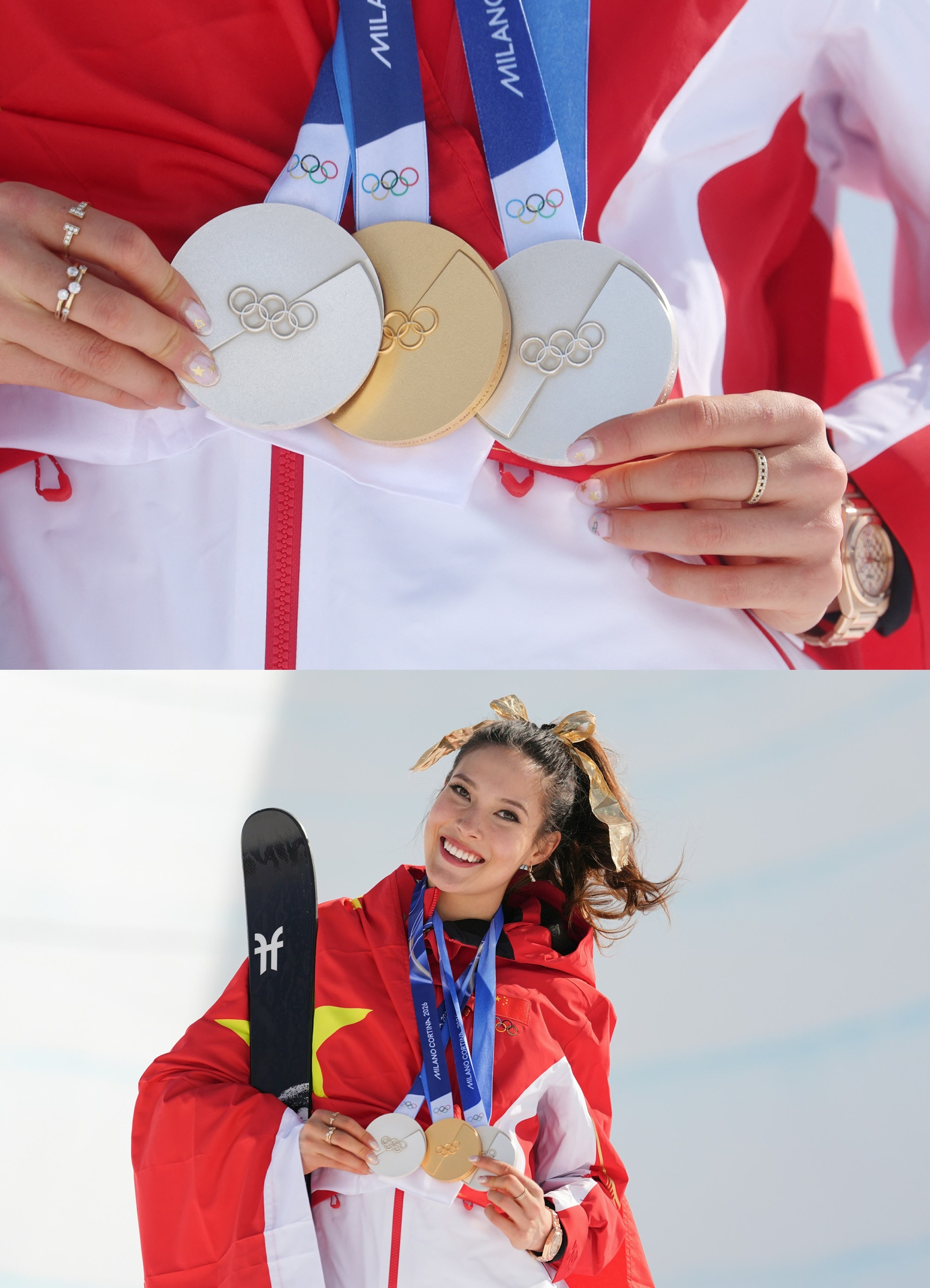 这届冬奥会,中国健儿在最高领奖台上展现出的时尚品味同样令人惊喜。单板之王苏翊鸣在生日夺金后,堪称「最合格品牌大使」,在零下十几度的颁奖台上,全套露出卡地亚腕表、戒指和耳钉,被网友戏称「这波广告植入比电视剧还自然」,后续还身穿LV服饰发布社交媒体 ;而滑雪赛场的「颜值担当」谷爱凌,在自由式滑雪女子U型场地技巧摘金时,以蒂芙尼戒指和IWC万国腕表点缀造型,耳间闪耀的施华洛世奇耳饰与金色蝴蝶结发带亦增添亮眼巧思;还有我们的「桃姐」徐梦桃,卫冕历史第一人后,周身散发冠军气场,即使身着FILA国家队服,也难掩那份历经风雪后的从容大气。这些瞬间,让世界看到了中国运动员自信耀目的风采~