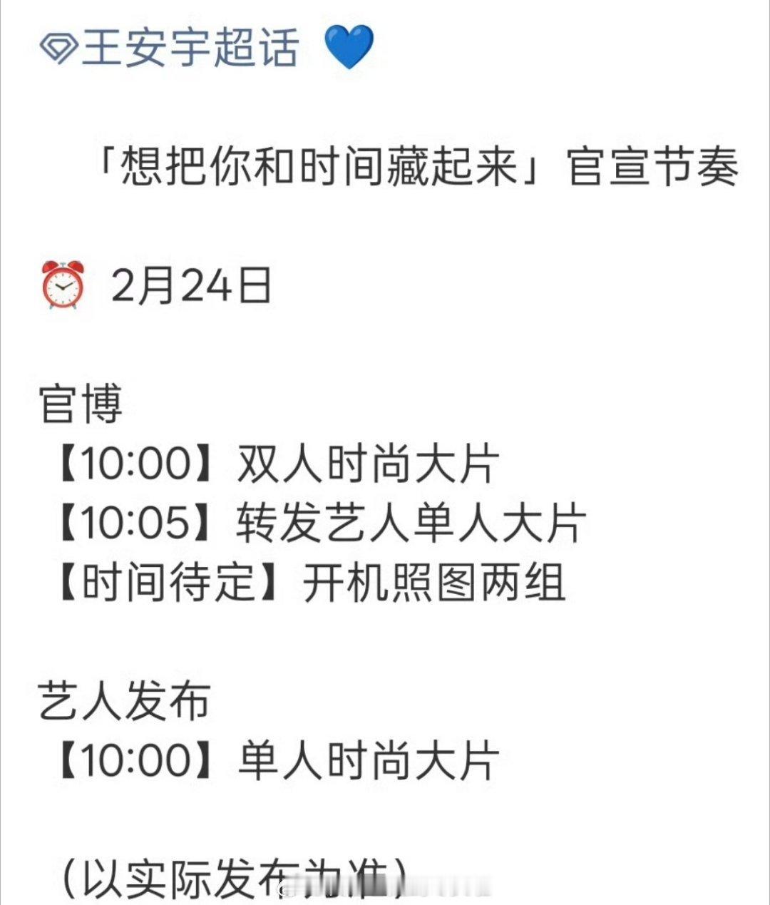 章若楠、王安宇想把你和时间藏起来明日官宣!可以看看最终番位了