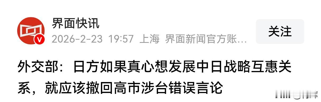 让步了?高市早苗最新讲话三天后中国回应,再给她一次机会? 20号当天高市早苗进行了重新施政后的最新讲话,在这次讲话内容中,当提到中国的时候高市早苗使用了“重要邻国”这一词汇。还说日本要全面推进和中国之间的战略互惠关系。感觉这位日本女首相似乎是要真的改善和中国之间关系了。 对于这种情况, 23号我国外交单位进行了回应,我们的发言人明确指出“如果日本真心想要发展中日战略互惠关系,就应该撤回高市涉台错误言论。” 我国在这次回应中,着重要求对方撤回言论,但并没有要求公开道歉。感觉从力度上似乎比之前轻了一些,难道我国真的决定对日本让步?再给高市早苗一次机会吗? 其实并不是这样,20号当天高市早苗的最新发言中,虽然有一定积极的言论,但是整体的论调仍然是以日本武装力量外扩美日联盟为核心。此人虽然非常刻意的绕开了台海话题,但是却声称我国在东海和南海正在以单方面的武力改变现状,还说地区局势更加紧张云云。 从这些内容来看,高市早苗提到中国言论的一些积极性的东西不过是逢场作戏罢了。而我国对于高市早苗言论的回应,也并不是要让步,因为我们并没有具体针对其演讲的内容一一进行回应,而是强调要推进关系首先要撤回言论这一核心动作,如果连这一动作和诚意都做不到的话,就不要妄谈和中国之间所谓的推进战略互惠关系了。