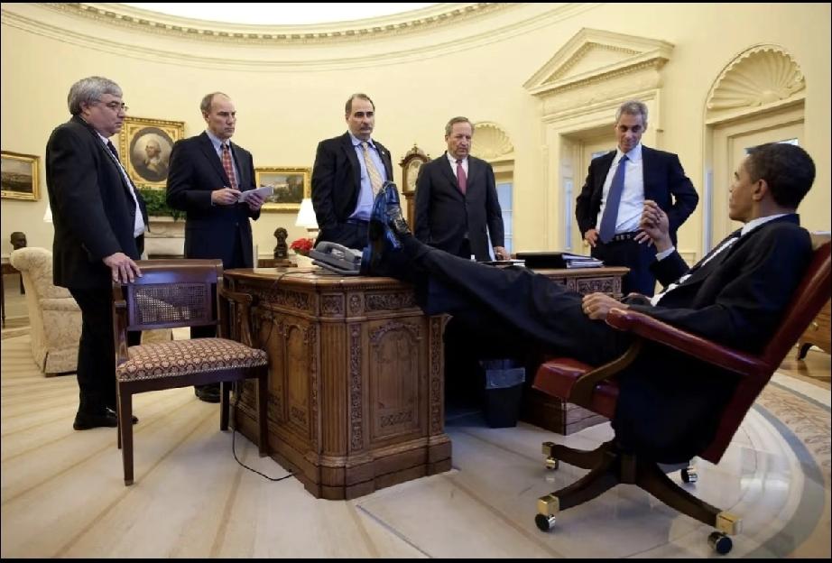 奥巴马这大长腿的地位有点太尊贵,整的拜登心里有点不舒服,脸儿上挂不住,他在想:哥们儿,不要给我摆霸气,说不准哪天我会坐在你的位置上。 随性的奥巴马,把工作当成了一种享受,这心态得活一百岁。