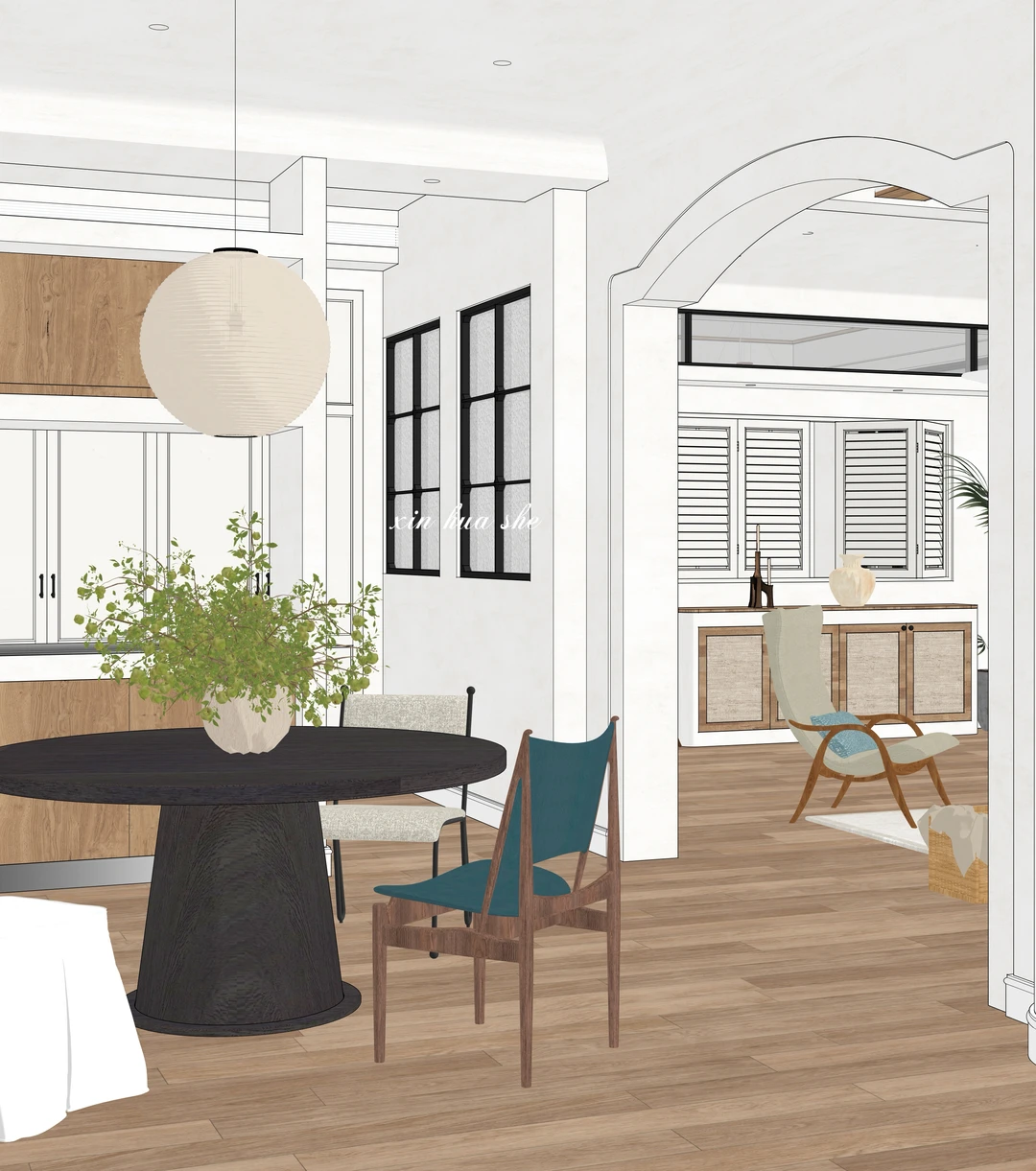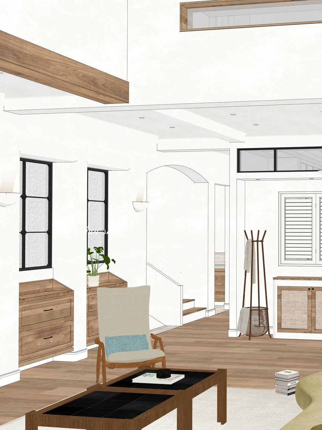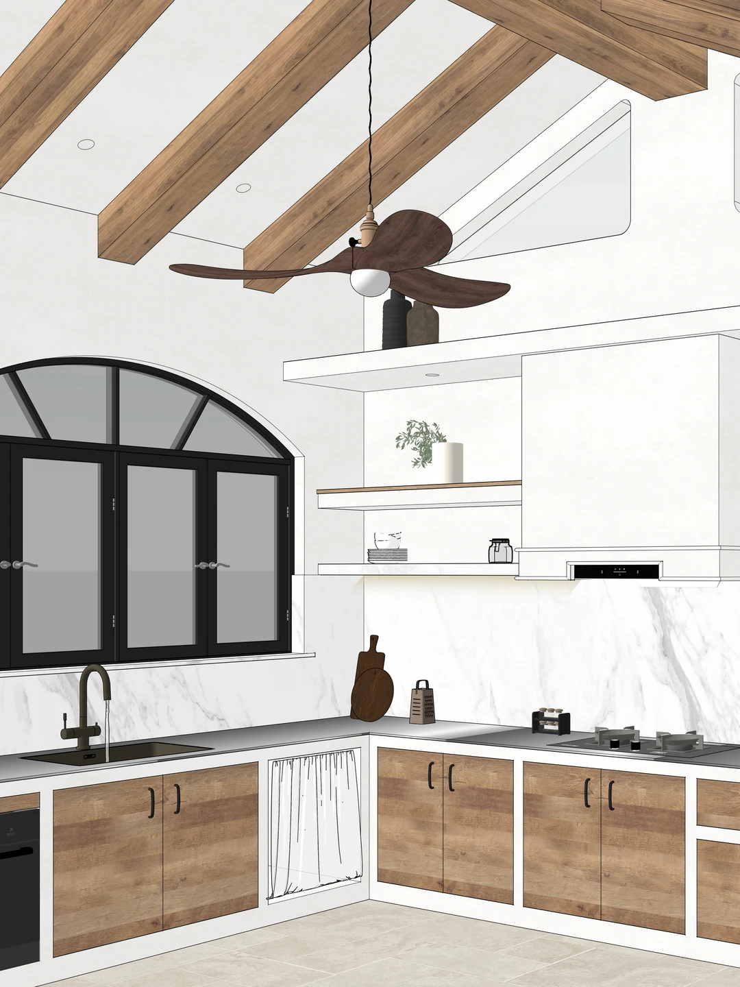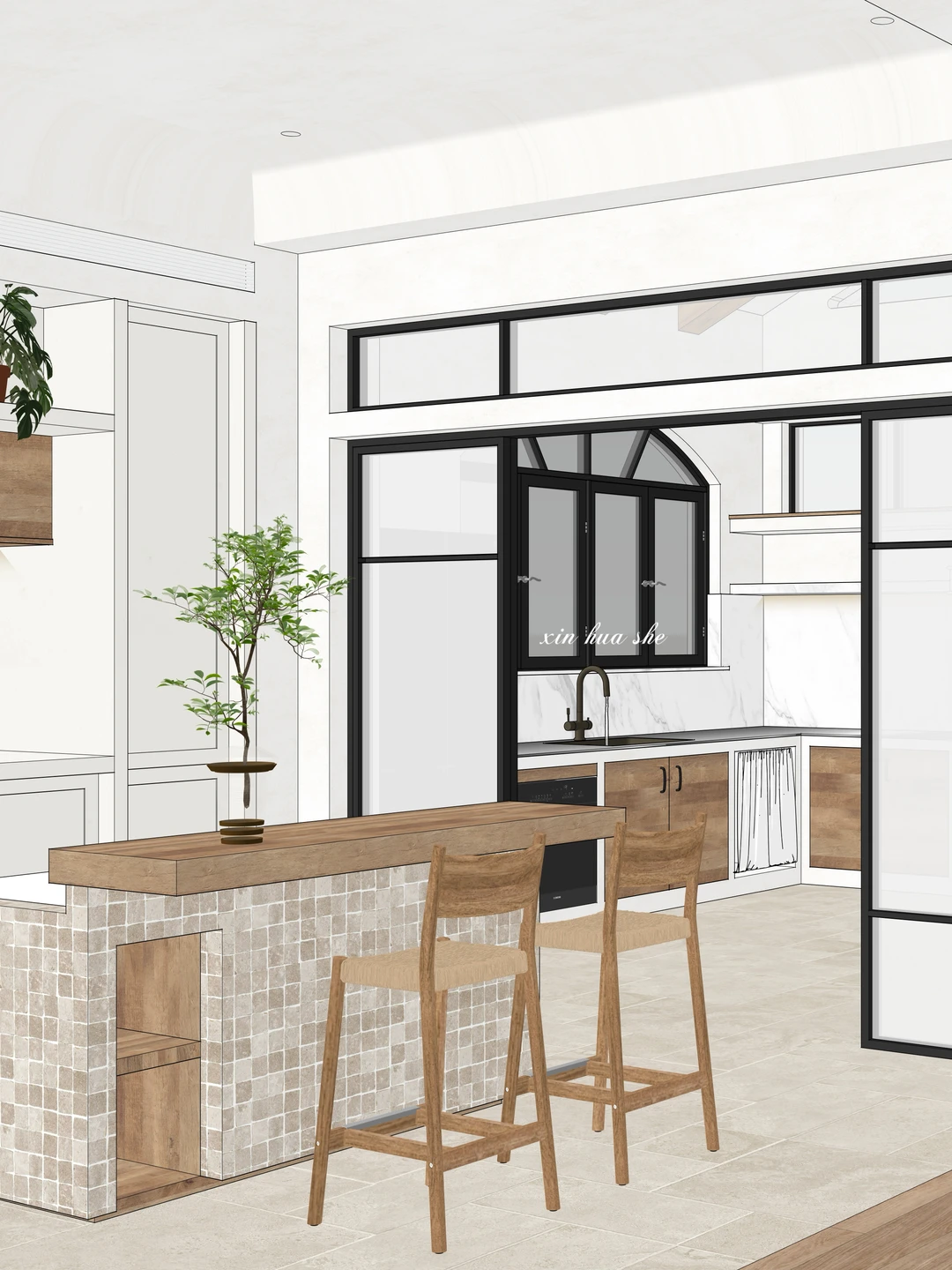 分享一组工作室去年底的原 创 设计图~ 虽然是纯SU素模,还没经过渲染调色,但那种慵懒松 驰的感觉已经快溢出屏幕了✨ 拱形老钢门窗、原木梁托、粗糙质感的墙面...即使只有线条和光影,仿佛已经能感受到南法的暖阳和微风… . . . 设计师:华崽 涛