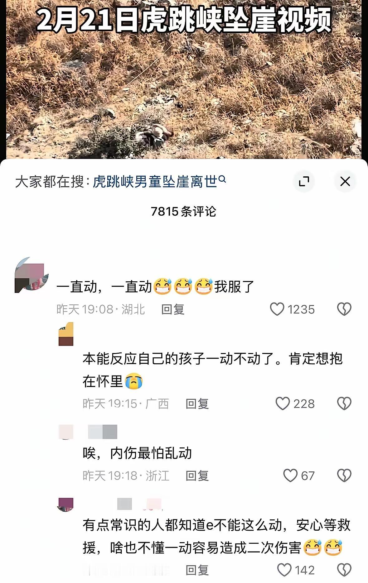 警钟炸响!云南虎跳峡8岁男童坠崖身亡!网红野路真的敢带娃去吗?一秒之间,天人永隔!云南虎跳峡,8岁男童瞬间坠崖,目击者就在两三米外,全程目睹 ,这不亚于恐怖片啊! 一阵大风刮过,孩子一声惨叫,紧接着就是重重砸在乱石上的声音。 孩子爸疯了一样冲下悬崖,奶奶崩溃跪地求救。救援人员冒死攀崖下去,可一切都晚了,来不及了孩子头部重伤,当场没了生命体征。 更让人揪心的是这里根本不是景区!是封闭未开放的野路!路宽只有1.5米,没有护栏,全是悬崖陡坡,风大到站不稳,可这样的路还是有人要硬闯😰,都不知道应该说是心大还是命大了😖。 就因为网上吹成“网红经典徒步线”, 大批家长带着孩子扎堆打卡,排队拍照,人流多得很啊,一个个都是不怕死点主啊。 可是美景再好看,也比不上孩子一条命! 盲目跟风网红点,是拿生命在冒险,是在堵博😠! 一条短视频、一句“超美打卡地”,毁了一个家庭,想想都可惜可怜。 为人父母,别再拿孩子的安全赌风景了。 如果是你亲眼目睹所有经过,你还敢带孩子去这种野景点吗?坠崖事件 8岁男孩儿遇难 虎跳峡度假区 安全第一 敬畏自然