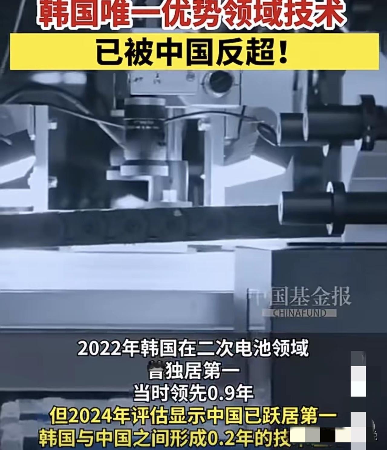 炸了!韩国最后一块技术遮羞布,被中国彻底撕碎 。韩国官方这次是真把自己把底裤都掀了!2月22日韩媒重磅炸场:韩国最后一项领先中国的技术,没了! 曾经,二次电池是韩国11大领域里唯一能压中国一头的王牌!2022年还领先我们0.9年呢。 如今呢才短短几年,剧情直接来了个大反转。2024年评估结果一出:咱们中国反超韩国0.2年!整体技术差距更是拉大到0.7年! 这是什么概念呢?韩国拼命追美国,只缩小0.4年,中国甩开韩国,直接扩大0.5年! 网友们更是硬气:“以前仰望,现在平视,将来俯视。”“不是韩国退步,是中国跑得太快!”“真为祖国高速发展骄傲” 从追赶到并跑,再到全面领跑,这就是中国制造最硬的底气。曾经你爱答不理,如今你高攀不起,往后咱们中国只会越来越好。 这一波咱们中国真是赢麻了!为咱们中国科技点赞,实在是太牛了!中韩产业关系 韩国现状 中韩产业互动