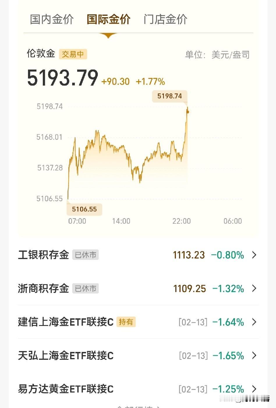 我就说这黄金价格奇怪吧! 国内收盘时间直线上升,现在涨到5195去了。 下午3:30黄金基金收盘时给跌下来,晚上不能交易了,又给涨上去,涨得是挺好看,但没毛用。 看明天开盘吧!老妇有望抛一半,如果到了明天下午3点半又跌下来,那就有鬼了。