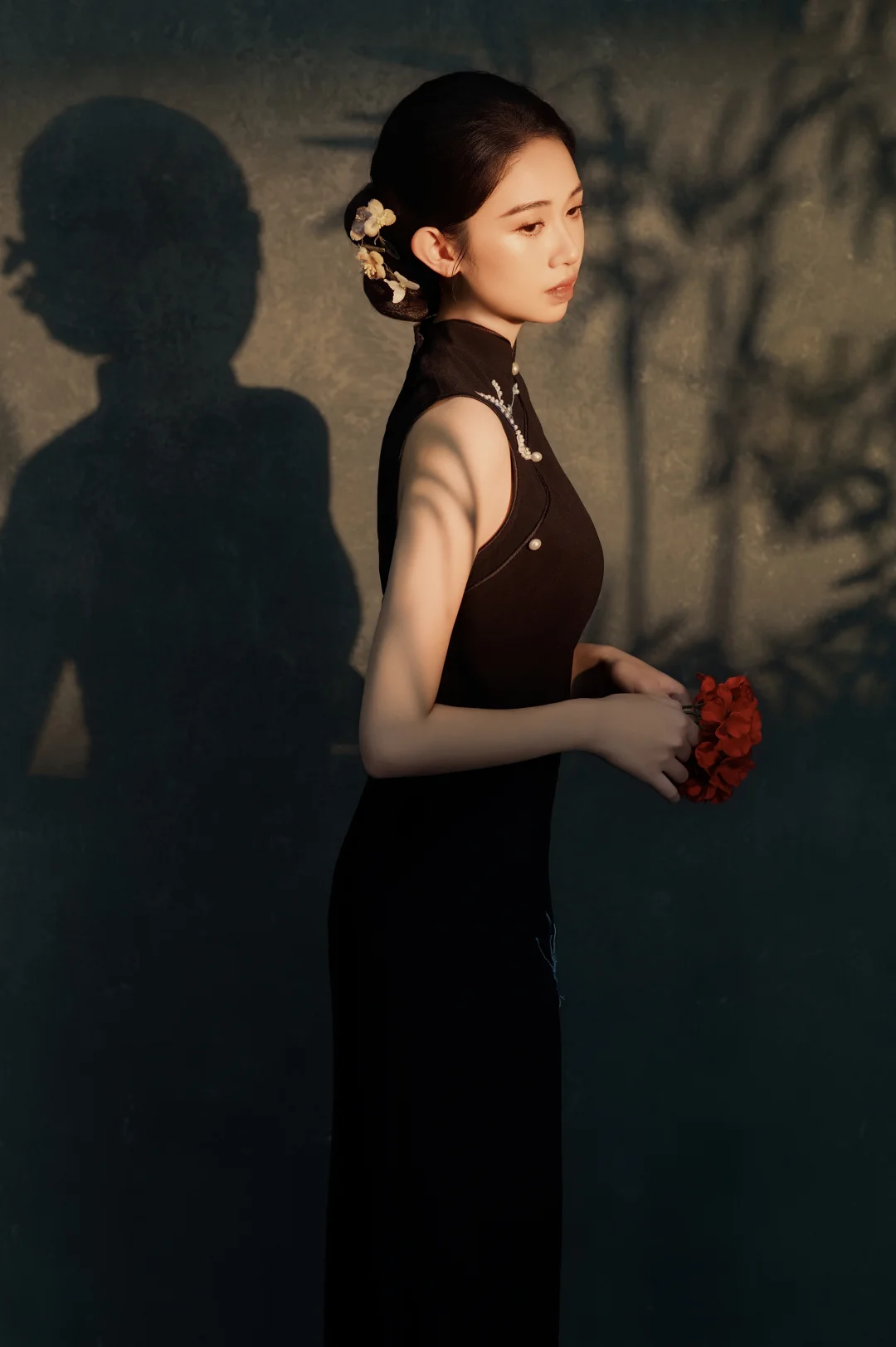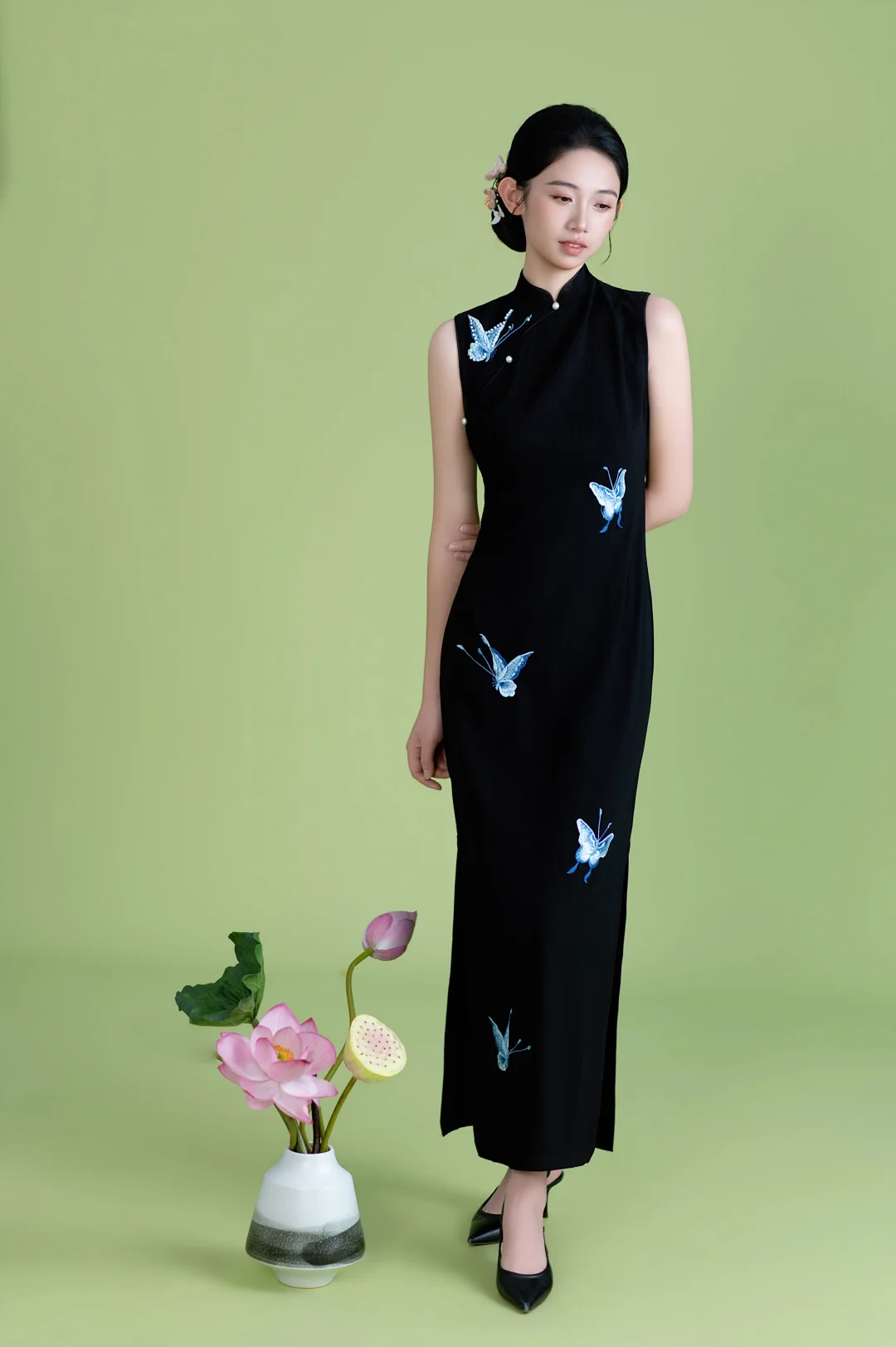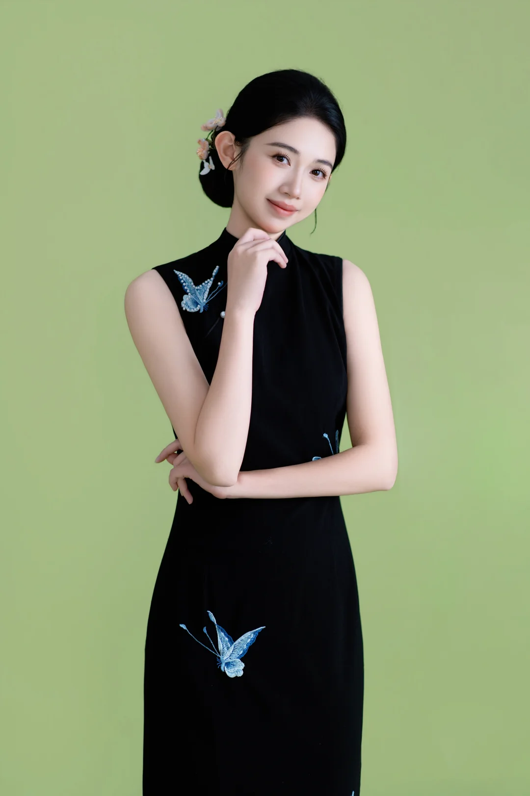 ▪️ 黑底蓝蝶刺绣旗袍,低调奢华,自带高级滤镜