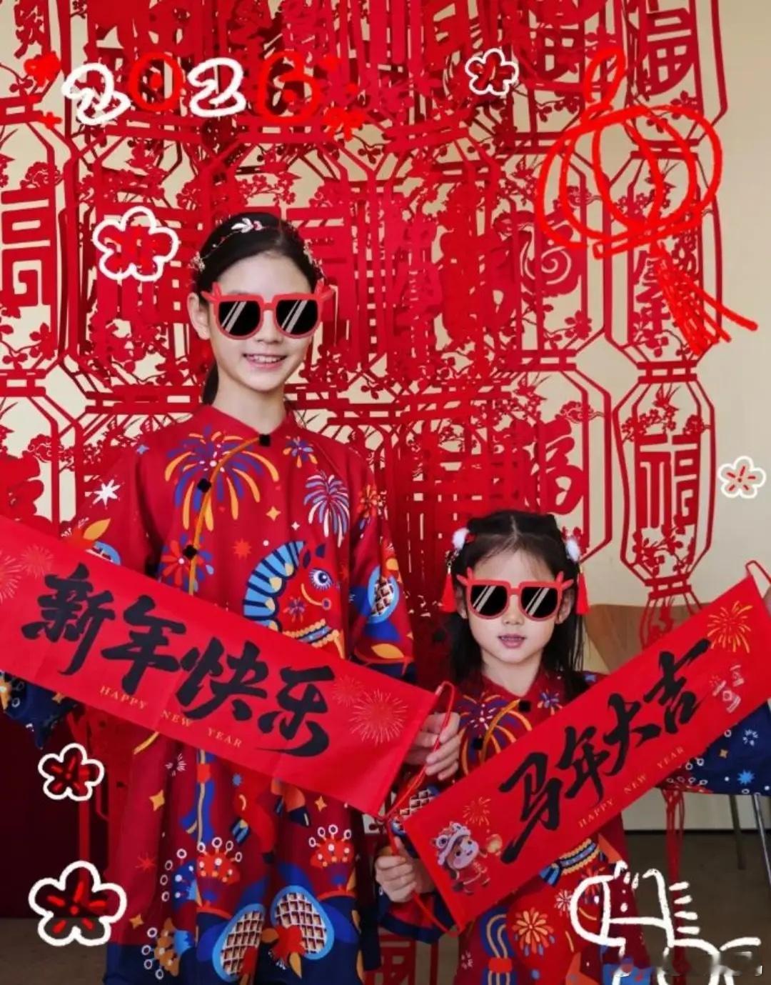 张梓琳晒春节动态,老公将女儿举起臂力超强,俩女儿长相都好标致!