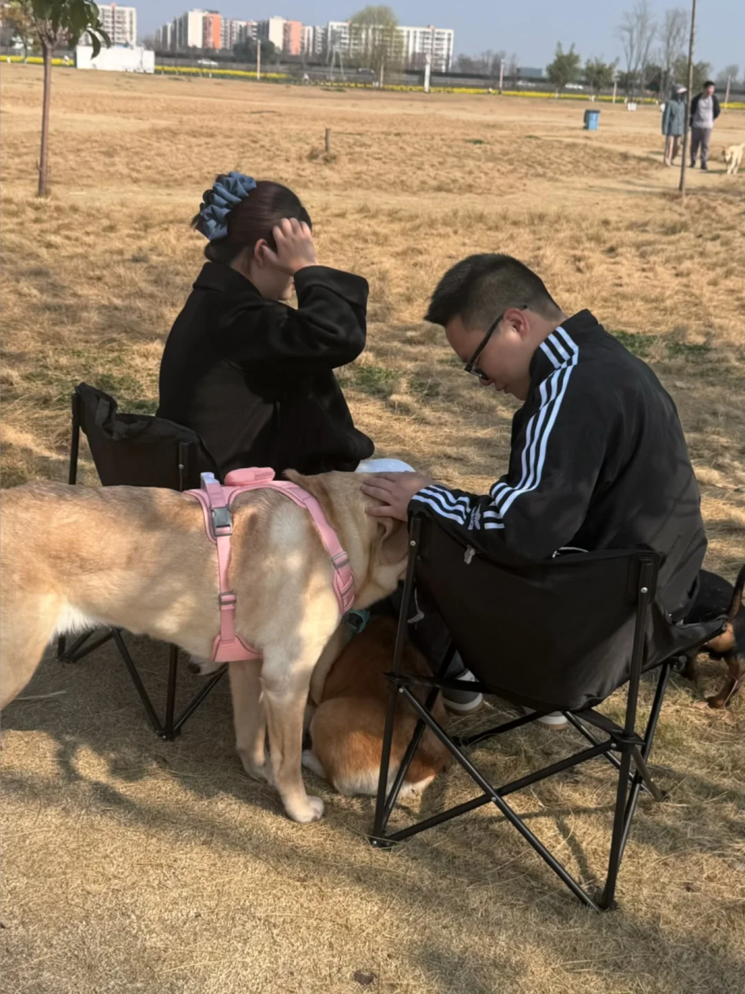一出去,我的狗就变成了别人家的了…… 谁手上有吃的,或者夸他可爱,立马就坐过去了[再见R] 这背影是多么幸福和谐的一家三口呀~💕 问题是这胖狗是我家的呀……[失望R]