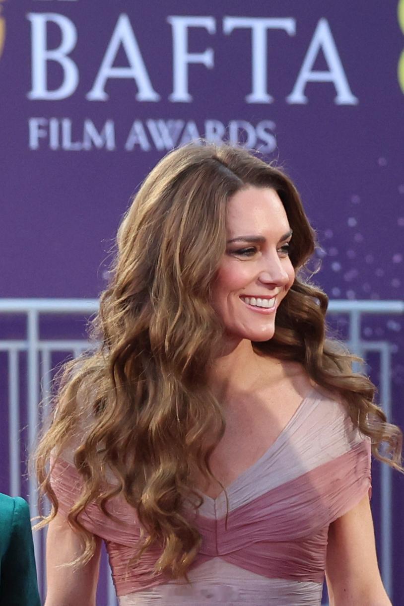 2026年2月22日,凯瑟琳王储妃时隔3️⃣年再次陪同她的丈夫威廉王储在伦敦皇家节日音乐厅参加英国电影学院奖颁奖典礼🏆全身上下都是旧品,晚礼服是Gucci,手包是Prada,耳环是伊丽莎白王太后,手链是玛丽王后,没有一件是新品。