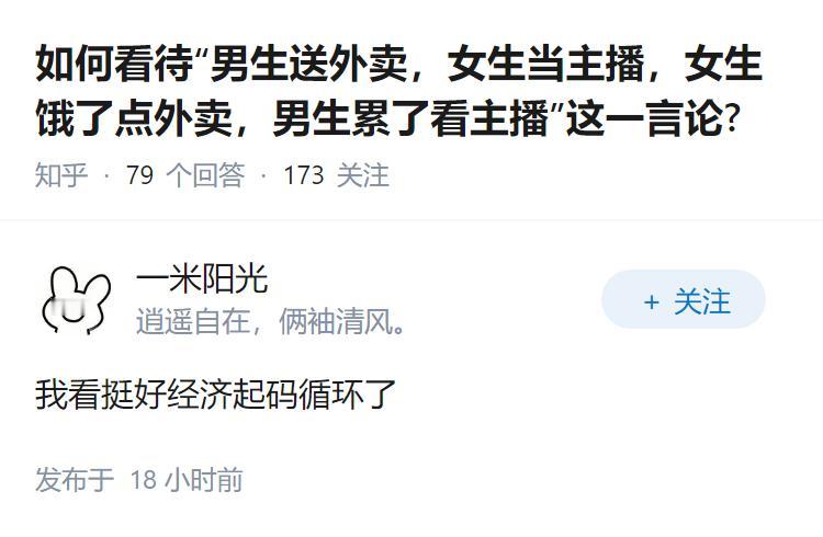 如何看待“男生送外卖,女生当主播,女生饿了点外卖,男生累了看主播”这一言论?