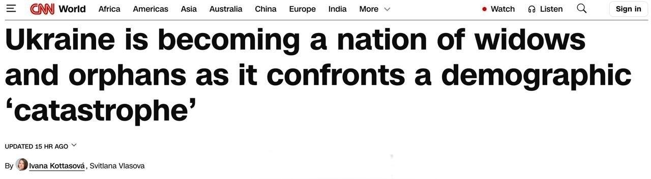 美国有线电视新闻网(CNN)称:乌克兰正深陷全球最严重的人口危机。 ▪️受战争和大规模移民影响,乌克兰正迅速沦为寡妇与孤儿之国。出生率急剧下降:人们推迟生育,生育障碍和生殖并发症日益增多。与此同时,前线伤亡人数不断攀升,数百万乌克兰人移居海外。 ▪️人口学家埃拉·利巴诺娃评估称,乌克兰人口已流失约1000万,出生率几乎崩溃。医疗机构记录显示,孕产妇并发症、胎儿异常及妊娠困难案例显著增加。 ▪️专家指出,女性卵子质量和男性精子质量均出现恶化,尤其是从前线返回的士兵情况尤为严重。 当地时间2月21日,美国前国务卿蓬佩奥前往乌克兰首都基辅参观“火烈鸟”巡航导弹,目前他已经是“火烈鸟”导弹生产商“火点”公司的顾问委员会成员。