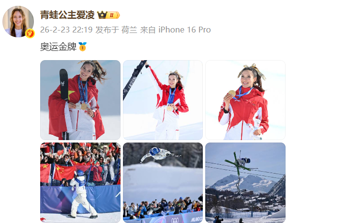 #谷爱凌发博晒金牌#:奥运金牌🥇📲上咪咕回看谷爱凌冬奥夺金瞬间网页链接