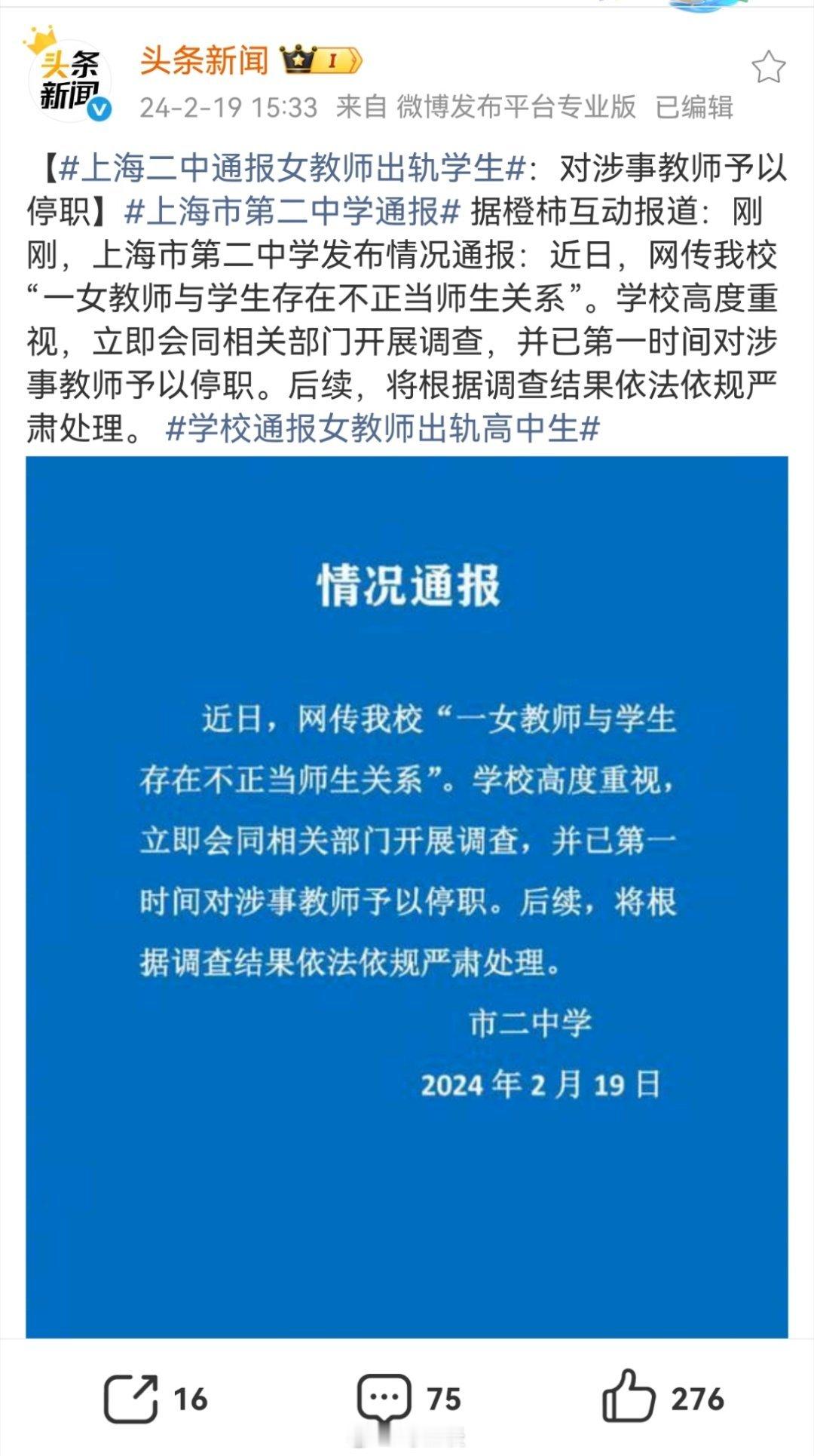 美29岁女教师与未成年发生关系被捕 挺严厉的。顺嘴一问,上海二中那位女老师后续是怎么处理的?