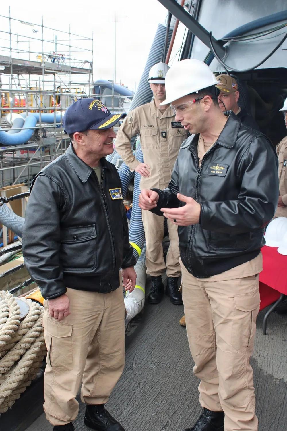 美国海军高级军官配备的御寒皮夹克,同样的品质在国内网络上购买大概只会比美国“国产”便宜很多。 2026年2月9日,西班牙罗塔海军基地,大西洋海军水面部队司令乔·卡希尔少将在访问西班牙罗塔海军基地期间,与阿利·伯克级导弹驱逐舰(DDG 117)指挥官威廉·伯克指挥官交谈,期间访问了该舰。访问内容包括关于作战准备、乘员发展和持续任务目标的讨论。保罗·伊格纳修斯号在美国第六舰队作战区,支持美国欧洲-非洲海军部队的作战效能、杀伤力和战备状态,并捍卫美国、盟军及合作伙伴在该地区的利益。