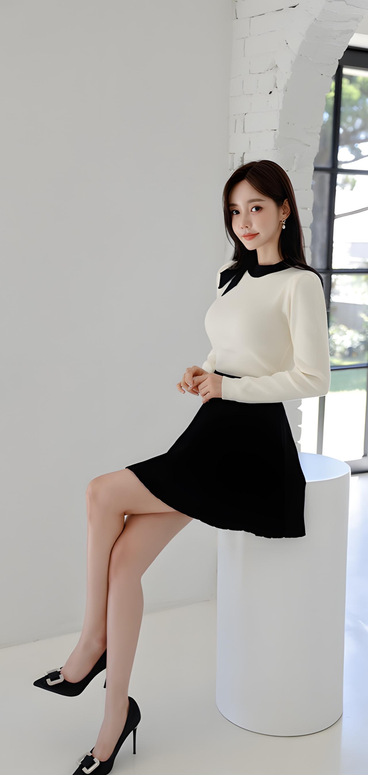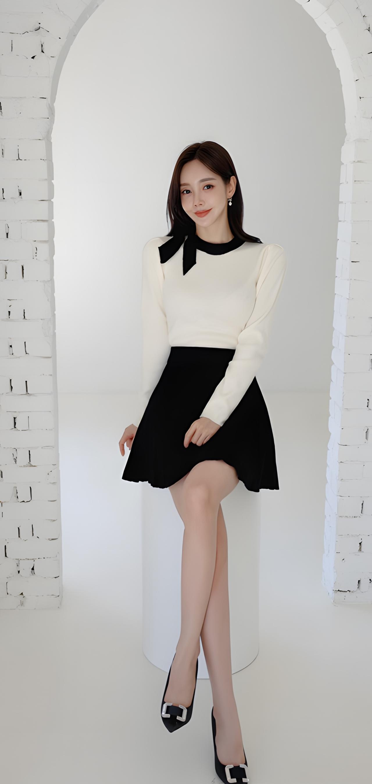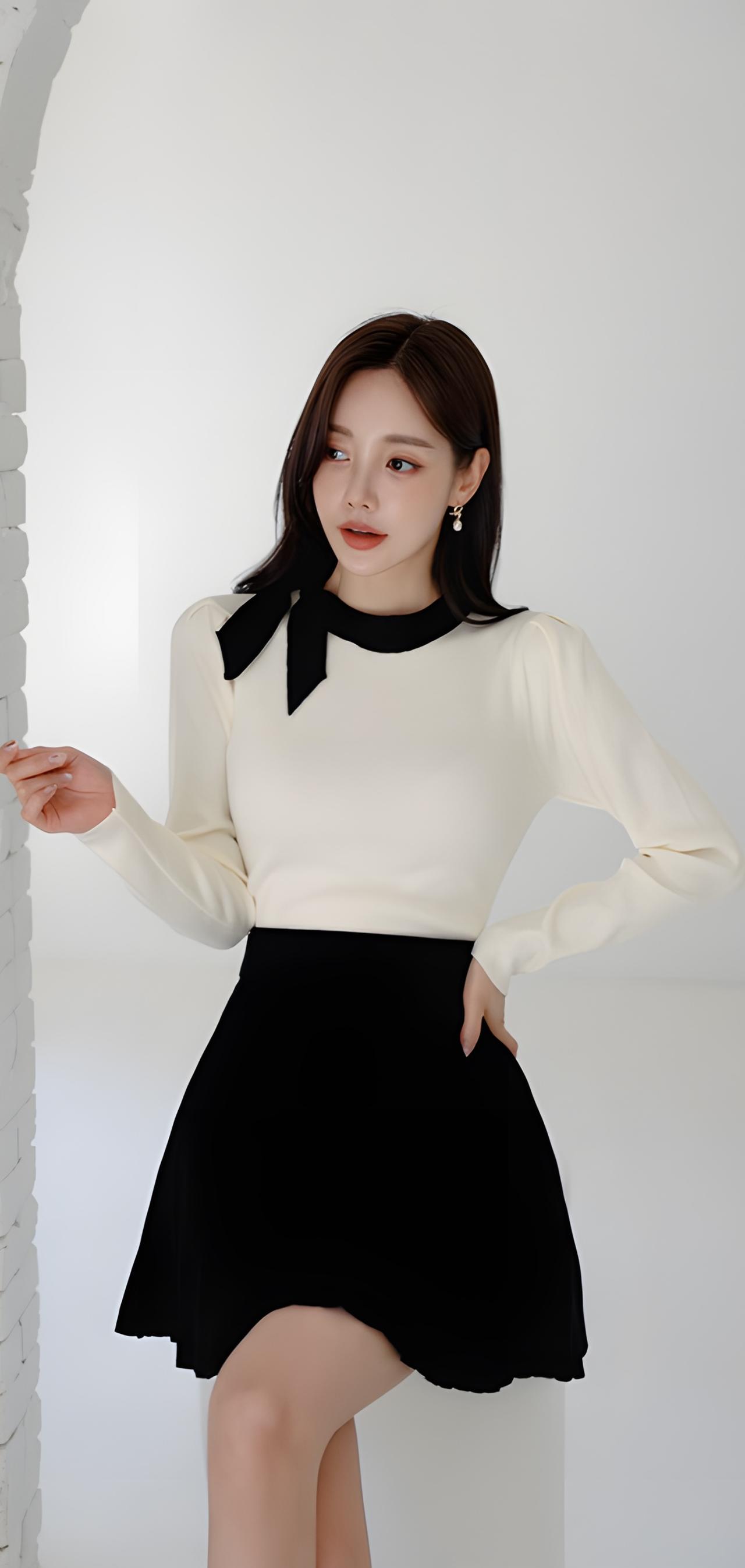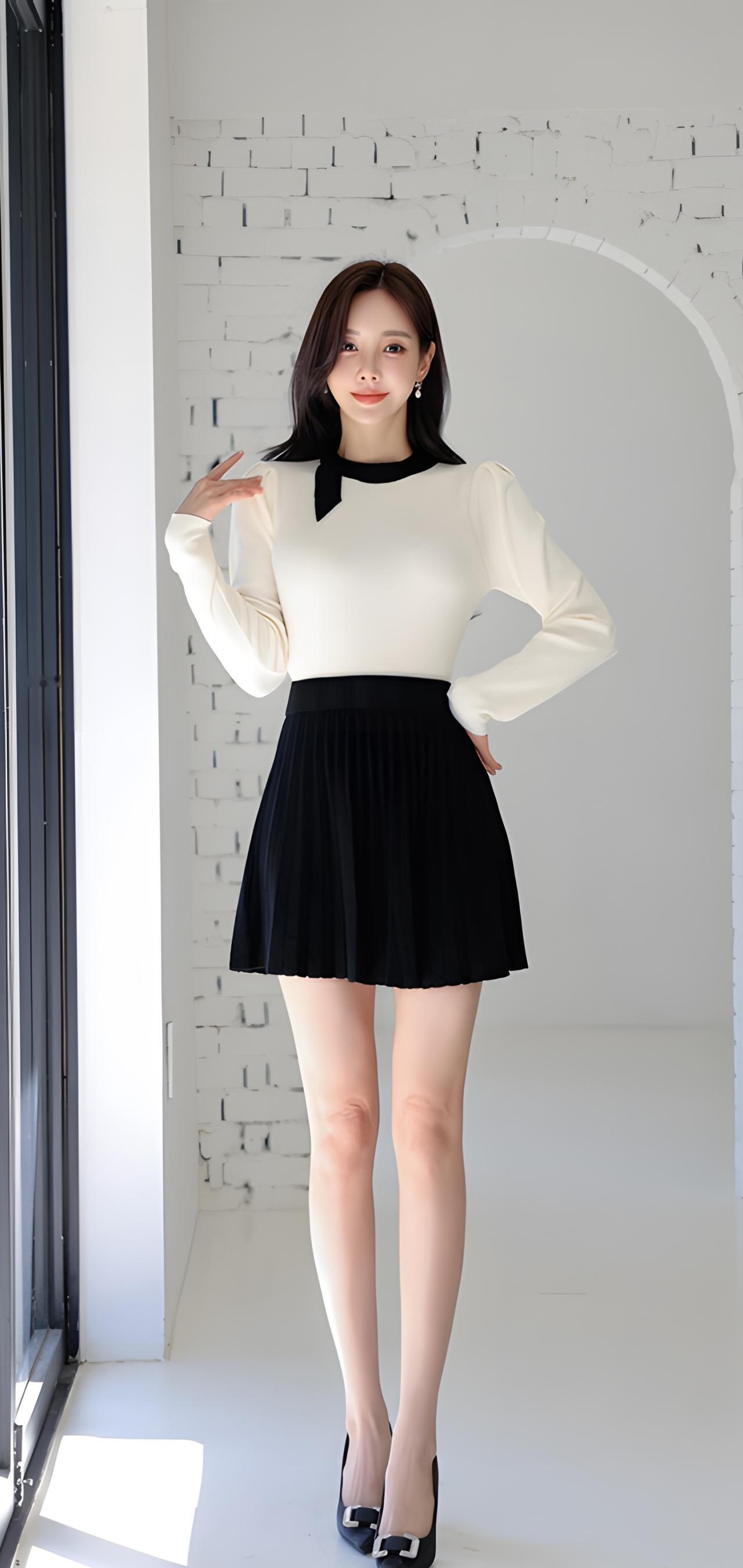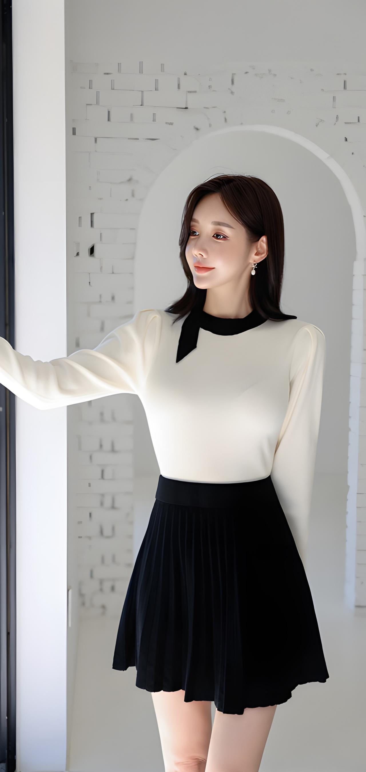 优雅黑裙搭配白色上衣,简约时尚,气质满满!