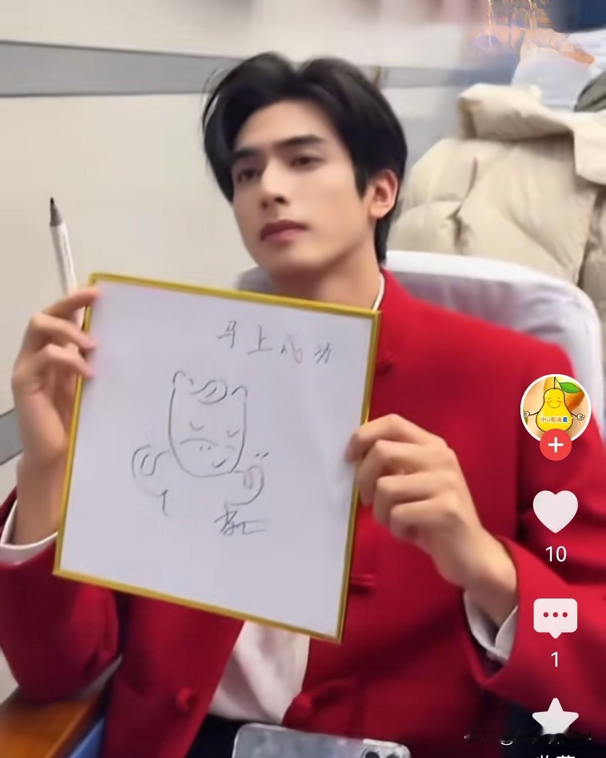 不得不说,综艺节目里的宋威龙是有点搞笑天分的! 爱笑,容易害羞,真诚,直接。图二居然一本正经和人说他小学是画画队长。 画画队长是什么鬼?难道不是画画课代表?结果我们看到图4他的大作,哈哈,那是马吗? 可能上综艺没有什么压力,呈现出来的状态就特别放松,这笑容就特别灿烂。 有时看上去憨憨的,觉得长了个霸总的脸,其实内心简单纯净。 比如有次综艺里说到秃顶,记得他赶忙分辩我家里没有秃顶的呀,我头发每个星期都要剪一次。 精力充沛,运动细胞特别发达,尤其弹跳力惊人,好像浑身有永远使不完劲。