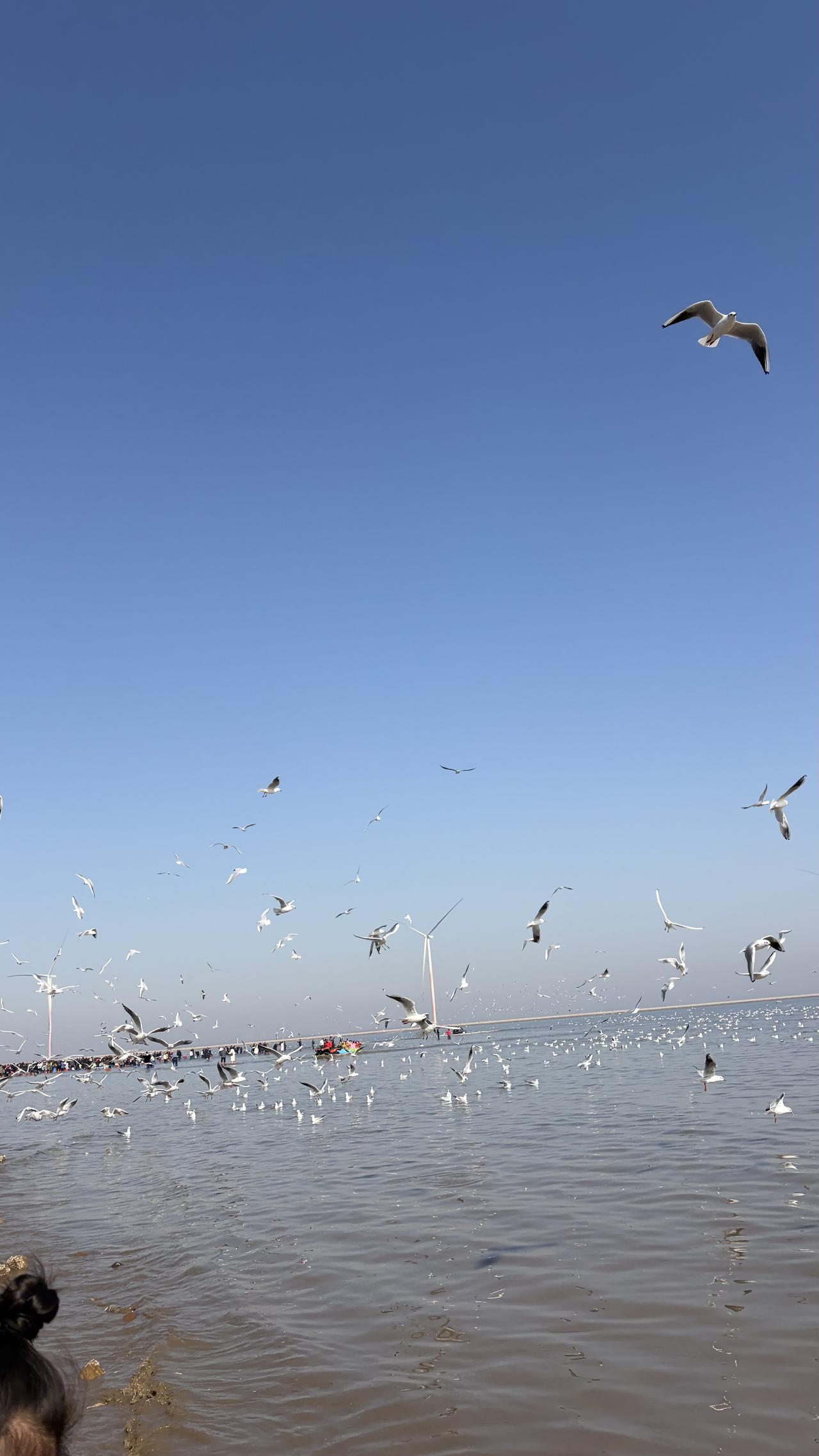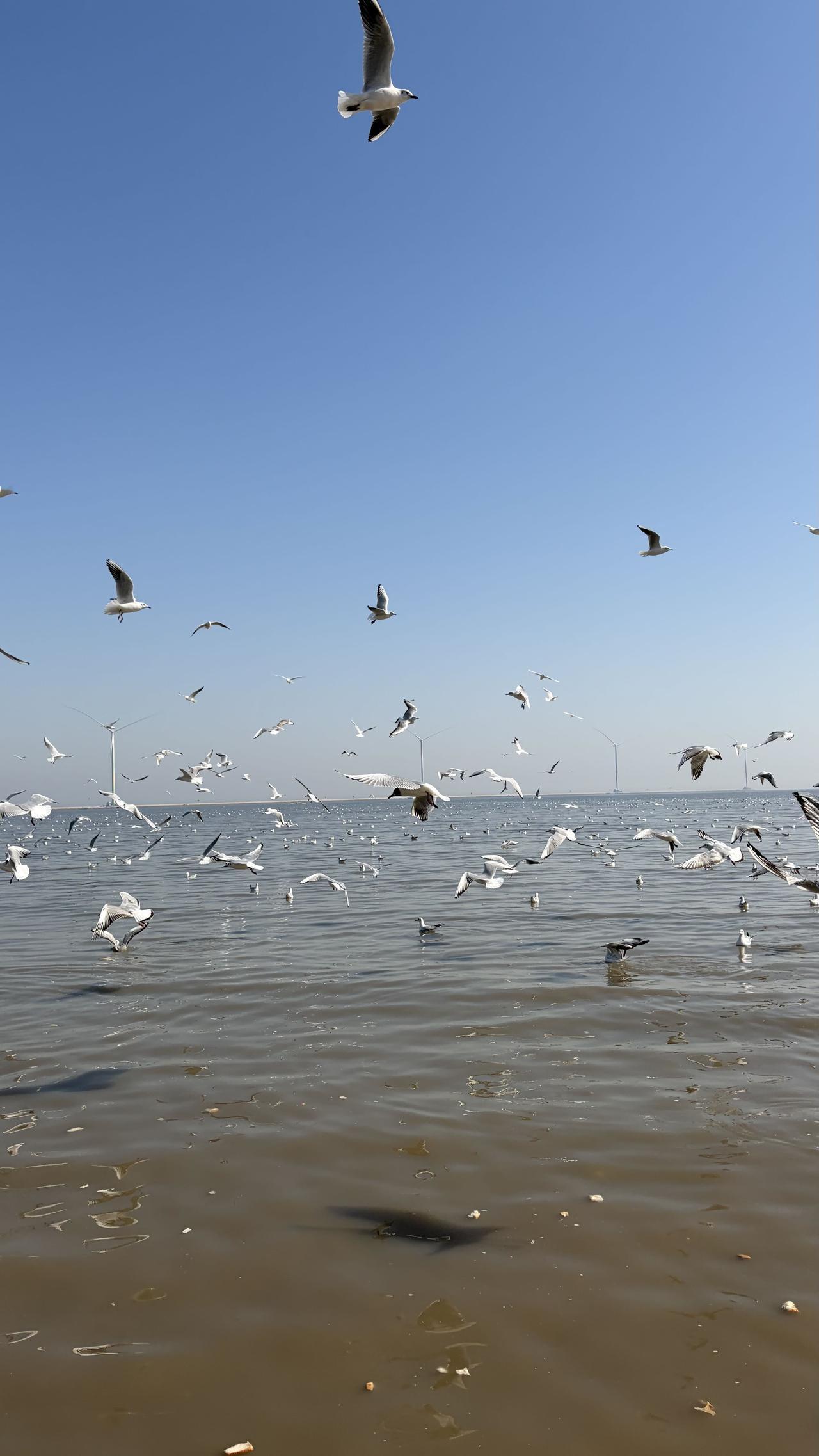 发一张去海边的照片大年初三陪同大孙女到天津滨海新区东疆亲海公园喂海鸥,海鸥好多太壮观了。 天津看海鸥 东疆公园海鸥 东疆看海 天津海鸥季 东疆港看海鸥